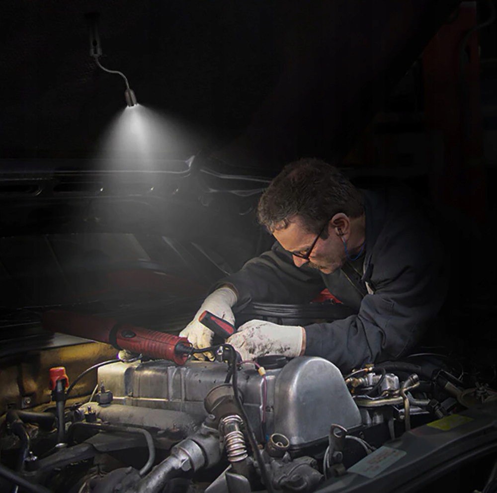 - Благодаря магнитному основанию б>, лампу можно использовать и в качестве освещения при работах на автомобиле. При креплении на внутреннюю сторону капота он будет освещать двигатель, а при креплении к колесной арке пригодится при замене колеса