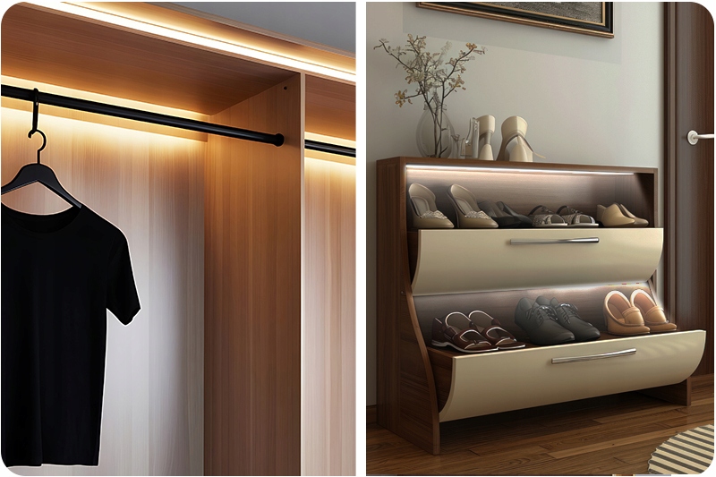 Светодиодная лента нейтрального цвета идеально подходит для освещения внутренности шкафа или комодов и позволит увидеть каждый уголок.