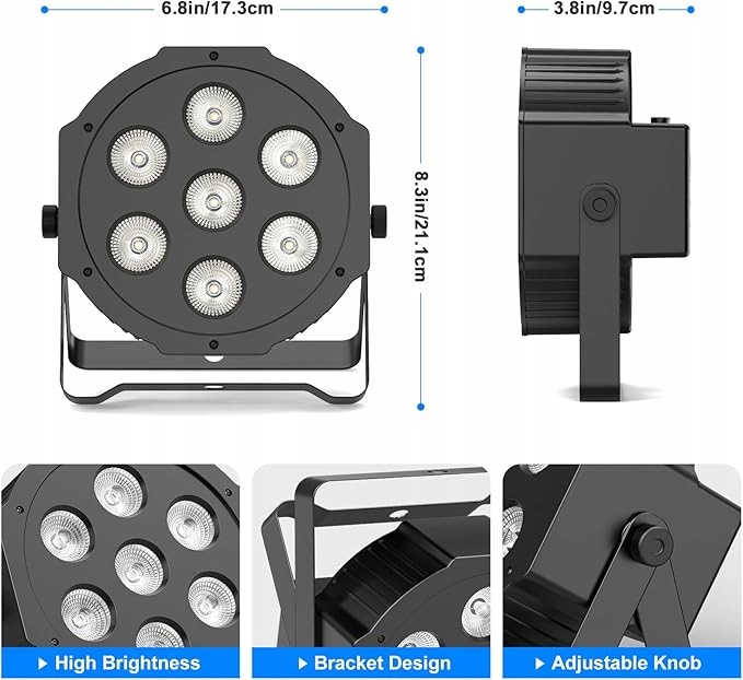 5 Режимы управления: Светодиодный отражатель поддерживает различные режимы: Автоматический, DMX, звуковая активация, мастер-слаб и дистанционное управление. Вы можете выбрать между статическими цветами, смешанными эффектами, прыжками, стробом, атрофией и градиентом.