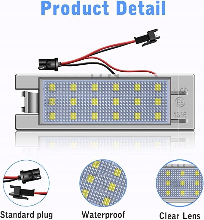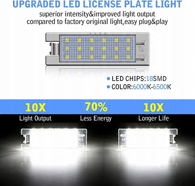 - Canbus, безупречен. Нагрузочный резистор и система шин разработаны вместе, без сообщений об ошибках. Светодиодное освещение номерного знака Tectico сертифицировано по стандарту E и разрешено для дорожного движения.