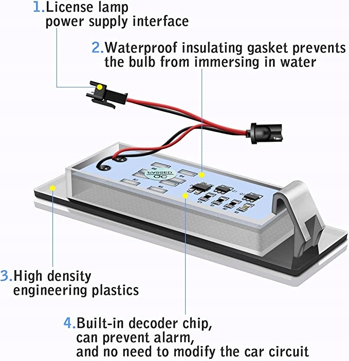 Светодиодная лампа изготовлена из высококачественного латексного материала со степенью защиты IP68 и водонепроницаема и пыленепроницаема. Срок службы дольше обычного. Светодиодное освещение номерного знака TECTICO одобрено для уличного использования.