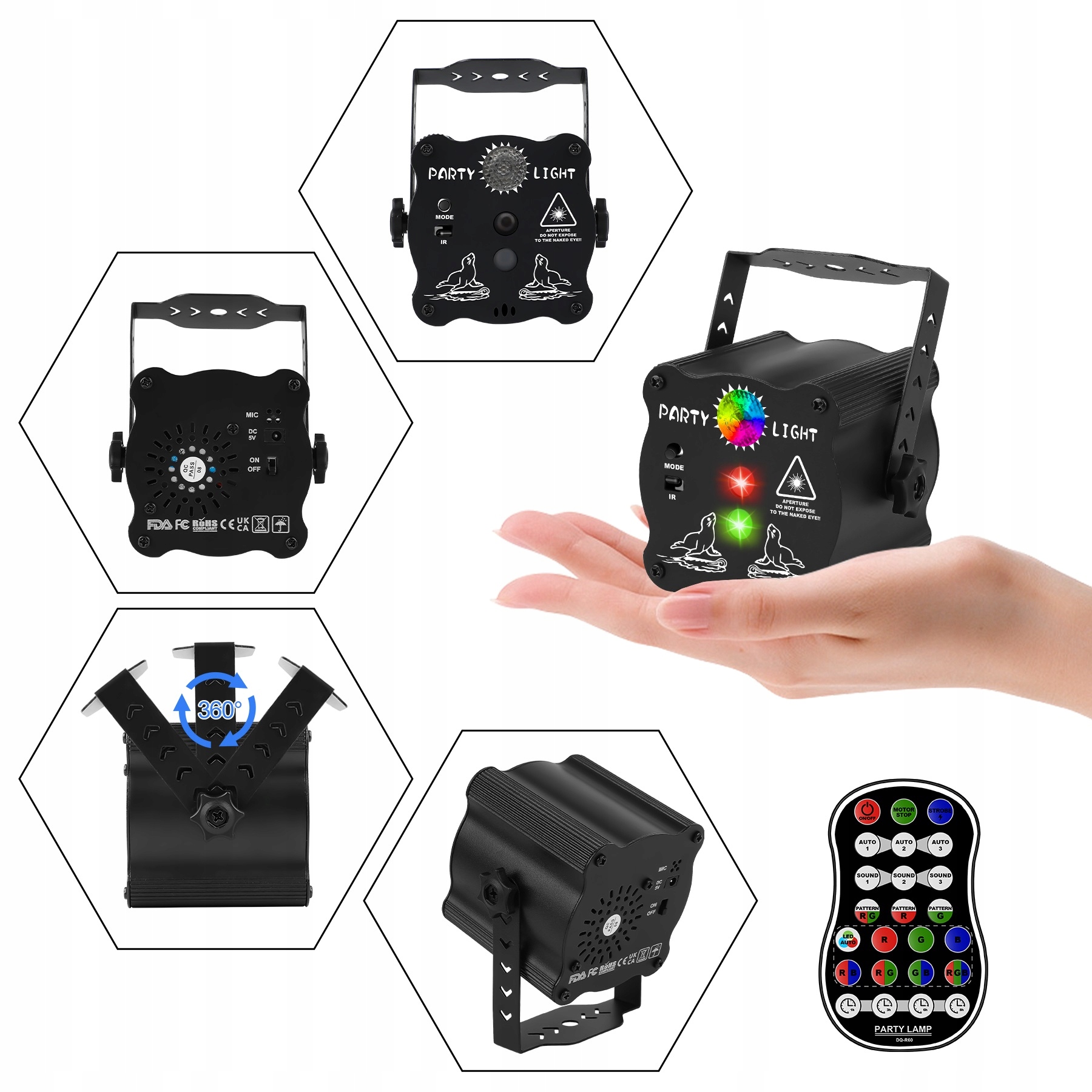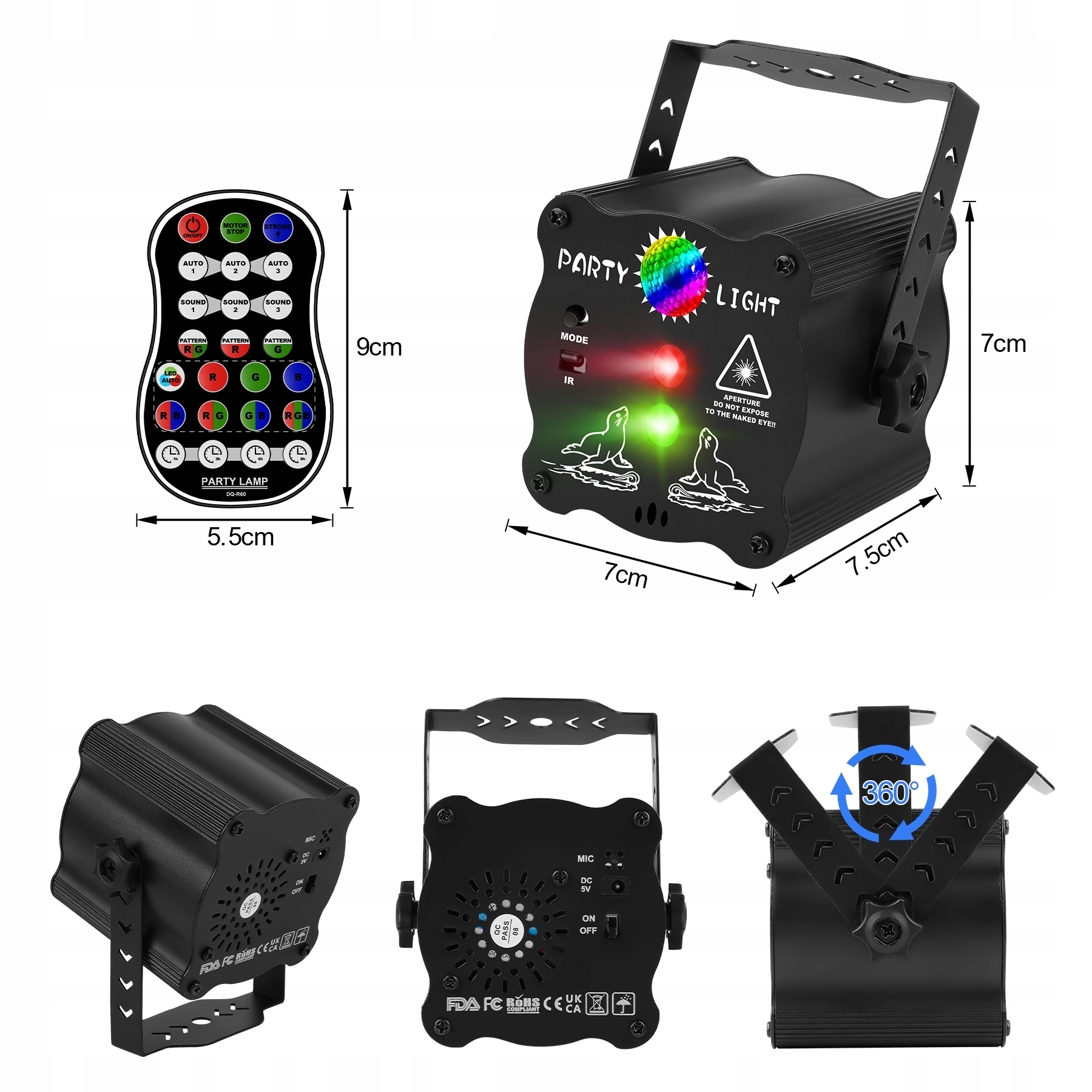 Ритм диско-света имеет режим датчика звука, поэтому свет на сцене может свободно меняться в соответствии с ритмом музыки, создавая эффект диско-шара и освещения сцены. Сделайте вашу вечеринку интереснее!