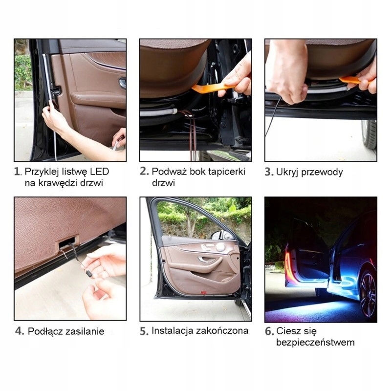 Светодиодная лента существенно повышает безопасность, открытые двери видны другим водителям издалека.