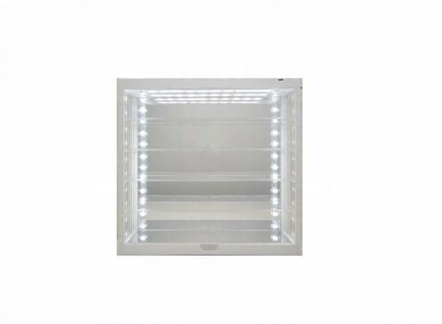 Витрина имеет светодиодное верхнее освещение и 4 светодиодные ленты по углам витрины.