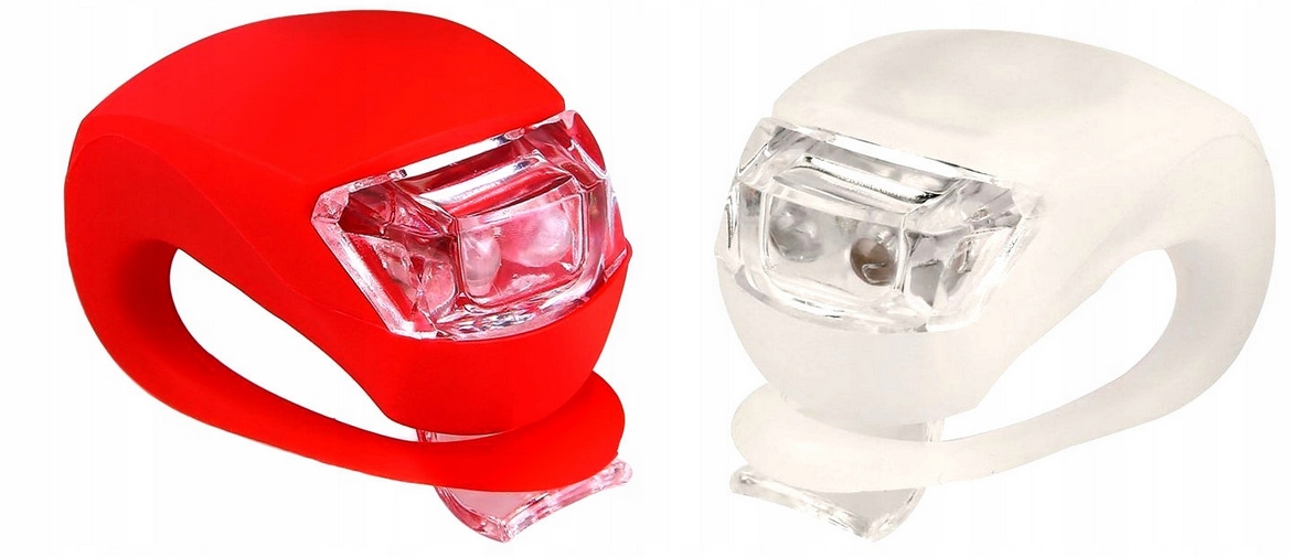 - 2 силиконовых велосипедных фонаря, оснащенных двумя яркими светодиодами (белый — спереди и красный — сзади)