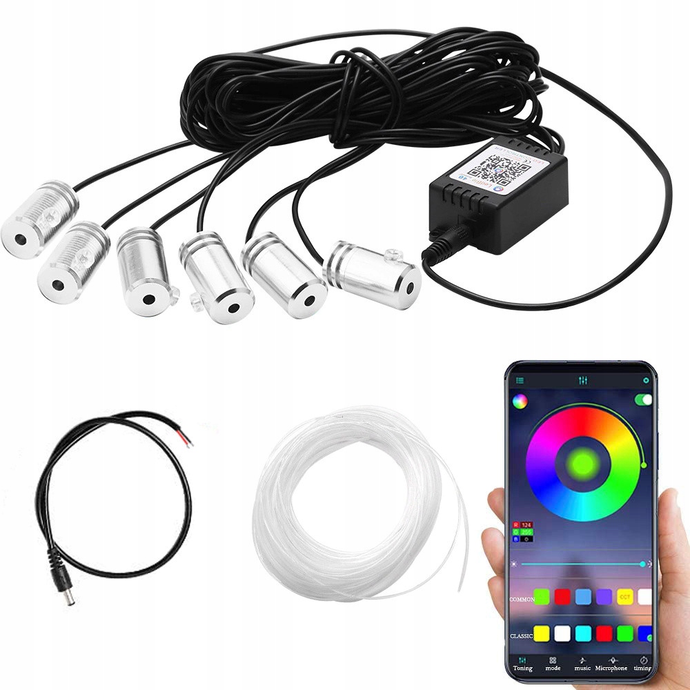 Оптоволоконное рассеянное освещение, светодиодное управление RGB через приложение, 6 в 1, 8 метров