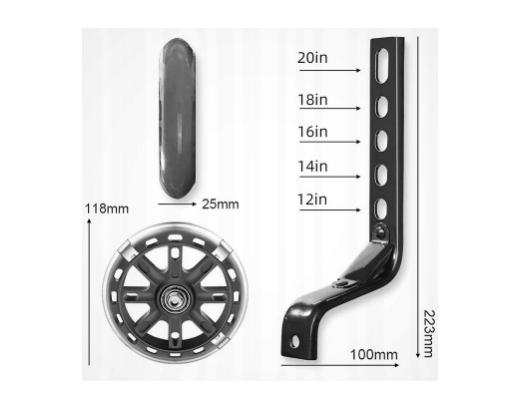 Обучающие колеса регулируются и подходят для велосипедов 12–20 дюймов, что позволяет подогнать размер под велосипед вашего ребенка.