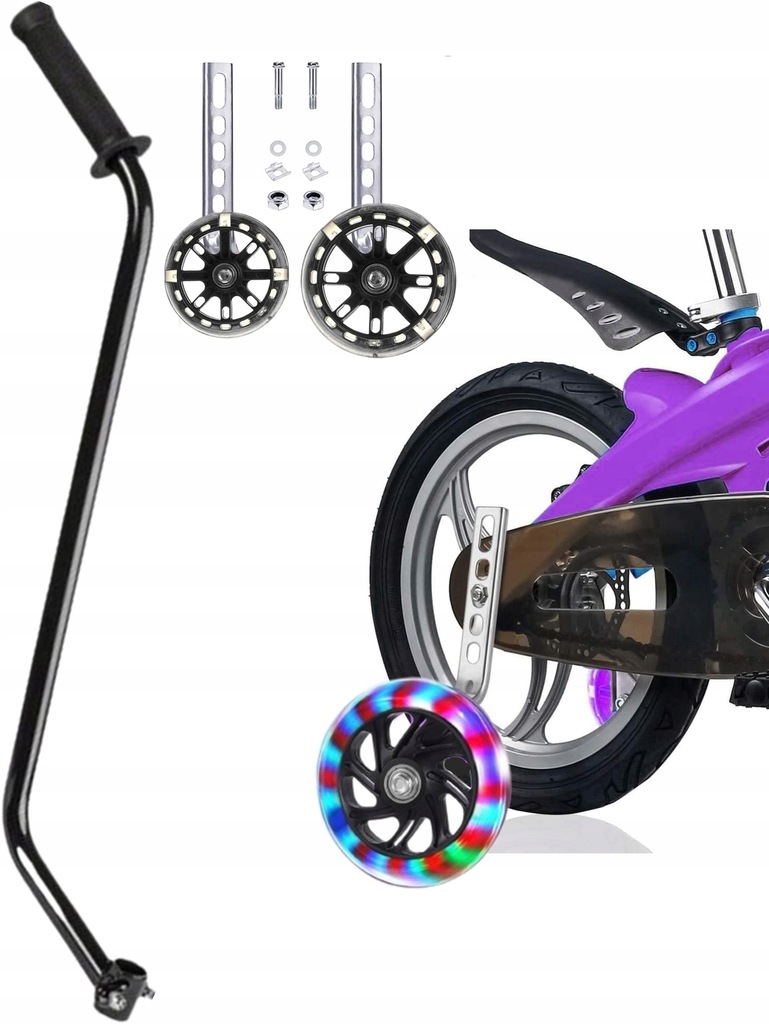 СВЕТОДИОДНЫЕ БОКОВЫЕ КОЛЕСА ДЛЯ ВЕЛОСИПЕДА ОПОРНЫЕ КОЛЕСА + НАПРАВЛЯЮЩИЕ ДЛЯ ДЕТСКОГО ВЕЛОСИПЕДА