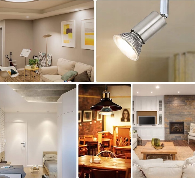 Стандартный гнездо GU10, лампочки можно легко установить, чтобы заменить обычные галогенные лампы или луковицы GU10. Замените галогенную лампу 40 Вт на светодиод 5 Вт. Сэкономьте более 90% на счета за электроэнергию и освещение.
