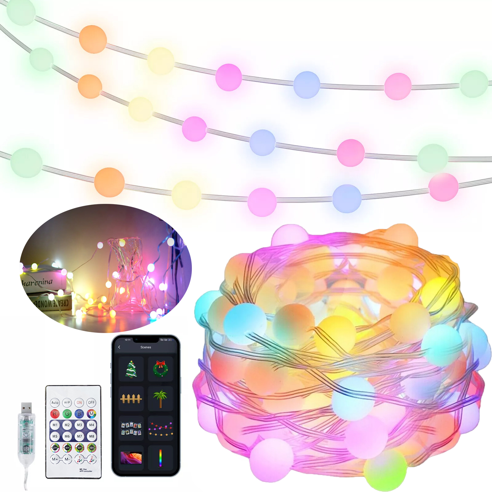 ✨【 RGB Rainbow Light String】 Наша легкая радужная струна RGB может одновременно отображать много цветов, создавая отличные результаты освещения радуги, сразу же внедряя замечательные эффекты освещения в ваше пространство. Вы можете выбрать разные цвета в зависимости от вашего настроения. Высококачественный гибкий провод, который можно легко сложить в любой форме. Они идеально подходят для рождественской елки, подарков, лестниц, занавесок, кроватей или подвески с потолка, их также можно использовать в подростковых комнатах.