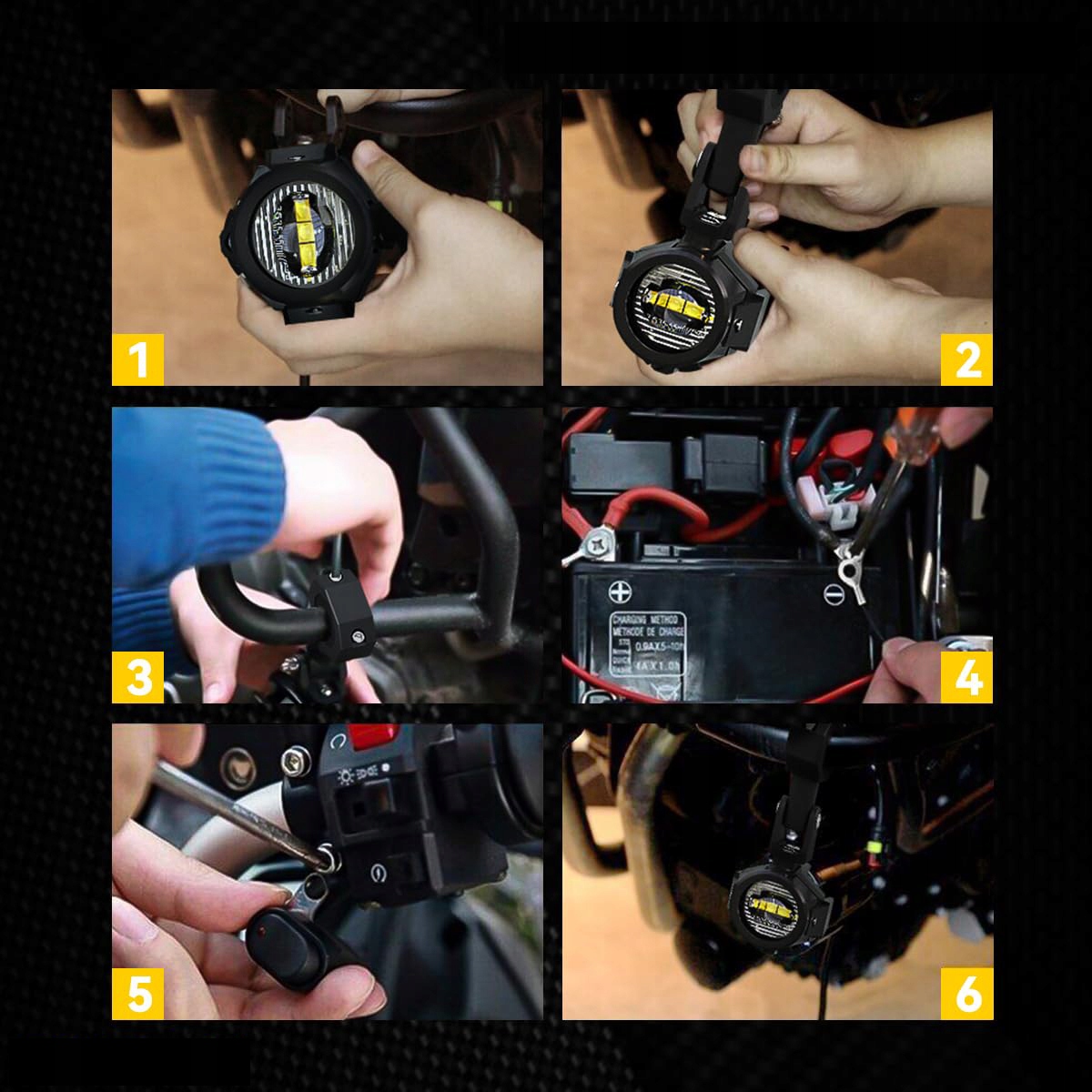 Светодиоды с отличной оптикой, которая дает много света, использовались в лампах. Полная кабель включена в набор. Дополнительные кубики с бесплатной кабельной выходом позволяют подключаться к существующей установке галогена. Лампы устойчивы к удару, грязи и воде. Они адаптированы для установки на трубе диаметром 20-25 мм. Галогенные ручки имеют вращающиеся и наклонные руки, что позволяет установить во многих местах и их идеальные настройки.