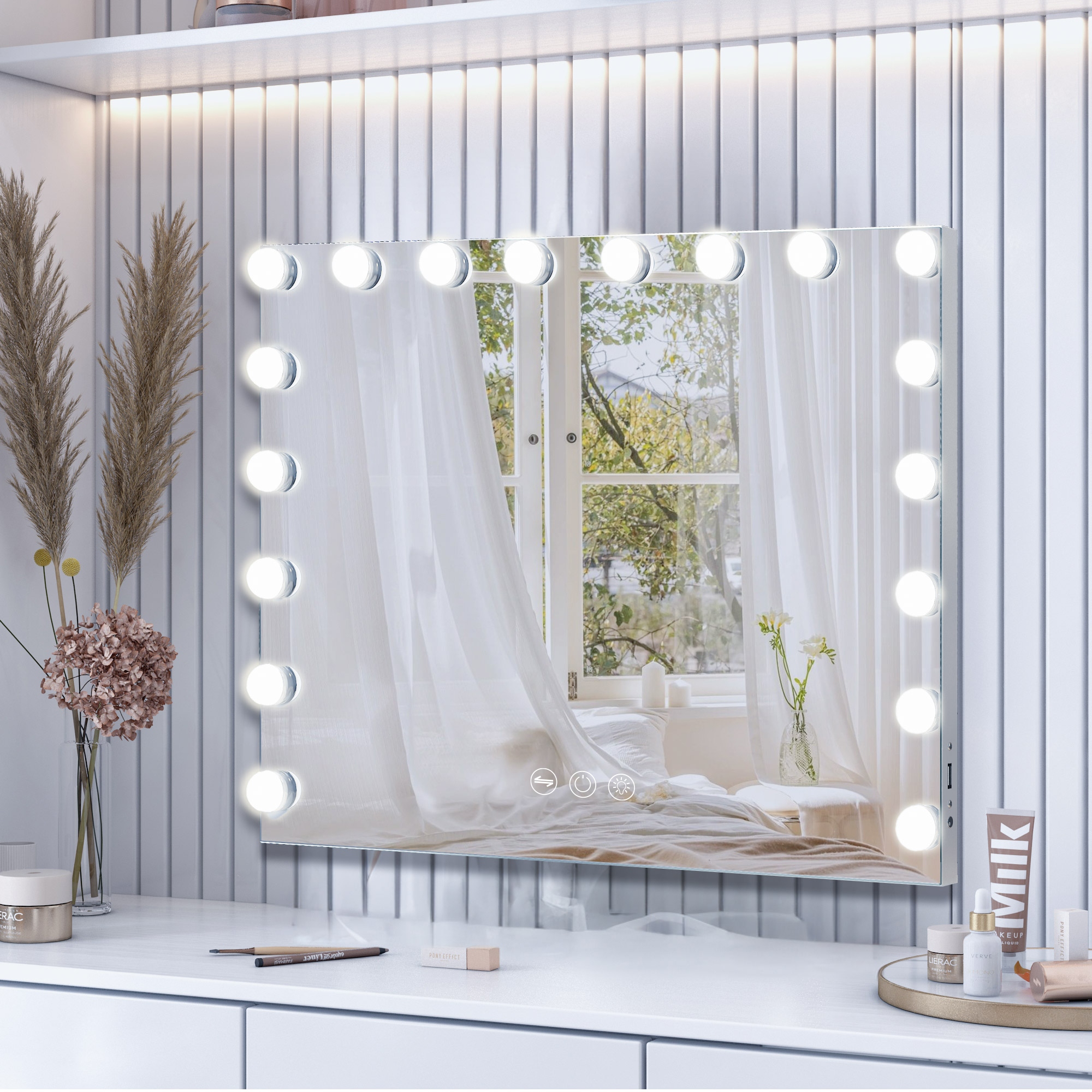 Это туалетное зеркало с огнями имеет 18 кусочков неинтереснованных светодиодных ламп, чтобы обеспечить большой и яркий вид, луковицы -пластиковая крышка, его нелегко сломать и разрезать руку. Белый, теплый желтый) Помогите получить безупречный профессиональный макияж. Режим памяти означает, что свет возвращается к той же яркости, что и при выключении.