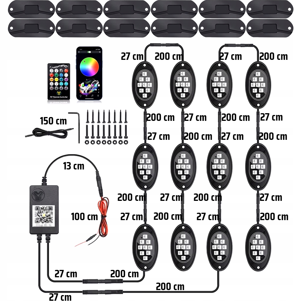 Набор освещения шасси идеально подходит для различных транспортных средств, таких как автомобили с пассажирами, внедорожники, внедорожники, мотоциклы, лодки и трейлеры. Он может быть установлен под транспортным средством, в колесных арках, а также внутри как внутреннее освещение. p>