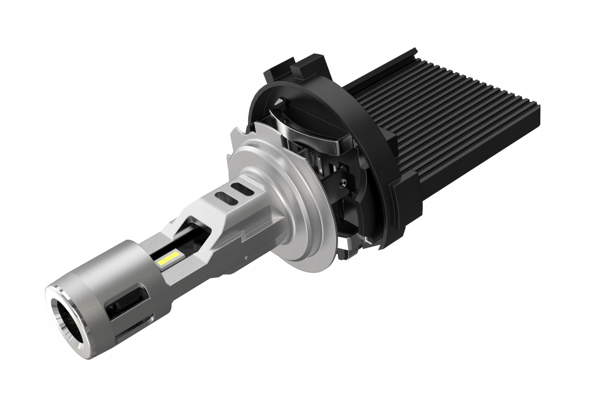 Поместив активный радиатор в модернизированный корпус, его можно установить в соотношении 1:1, как стандартную галогенную лампу, без необходимости использования переходников для нестандартных патронов ламп. Это единственная модель с соотношением сторон 1:1 и активным радиатором, что обеспечивает значительно большую мощность и яркость, чем модели без активного радиатора.