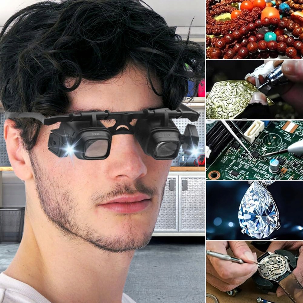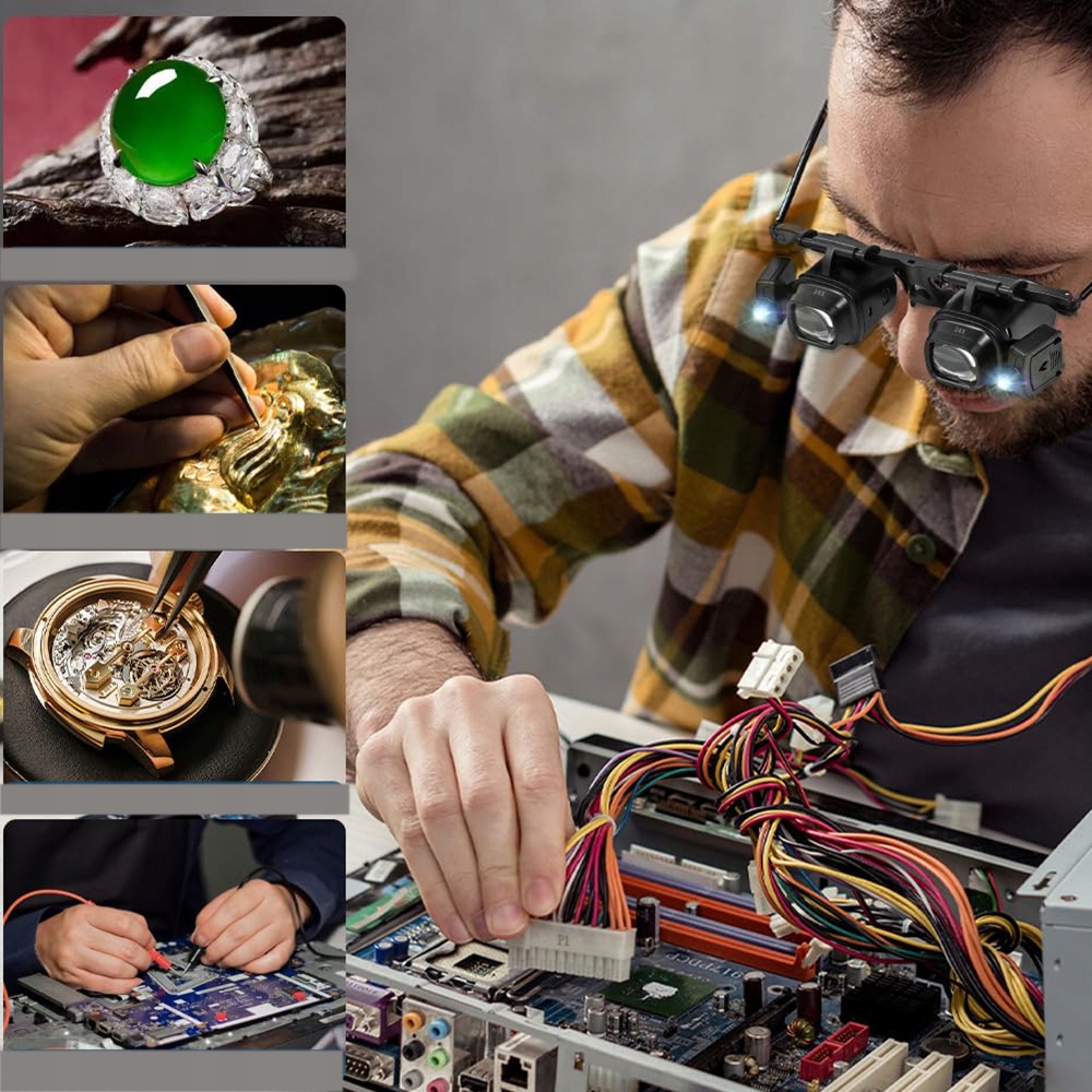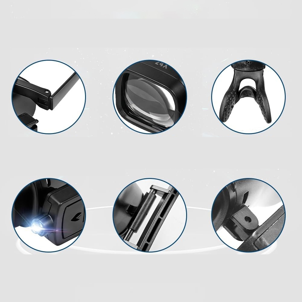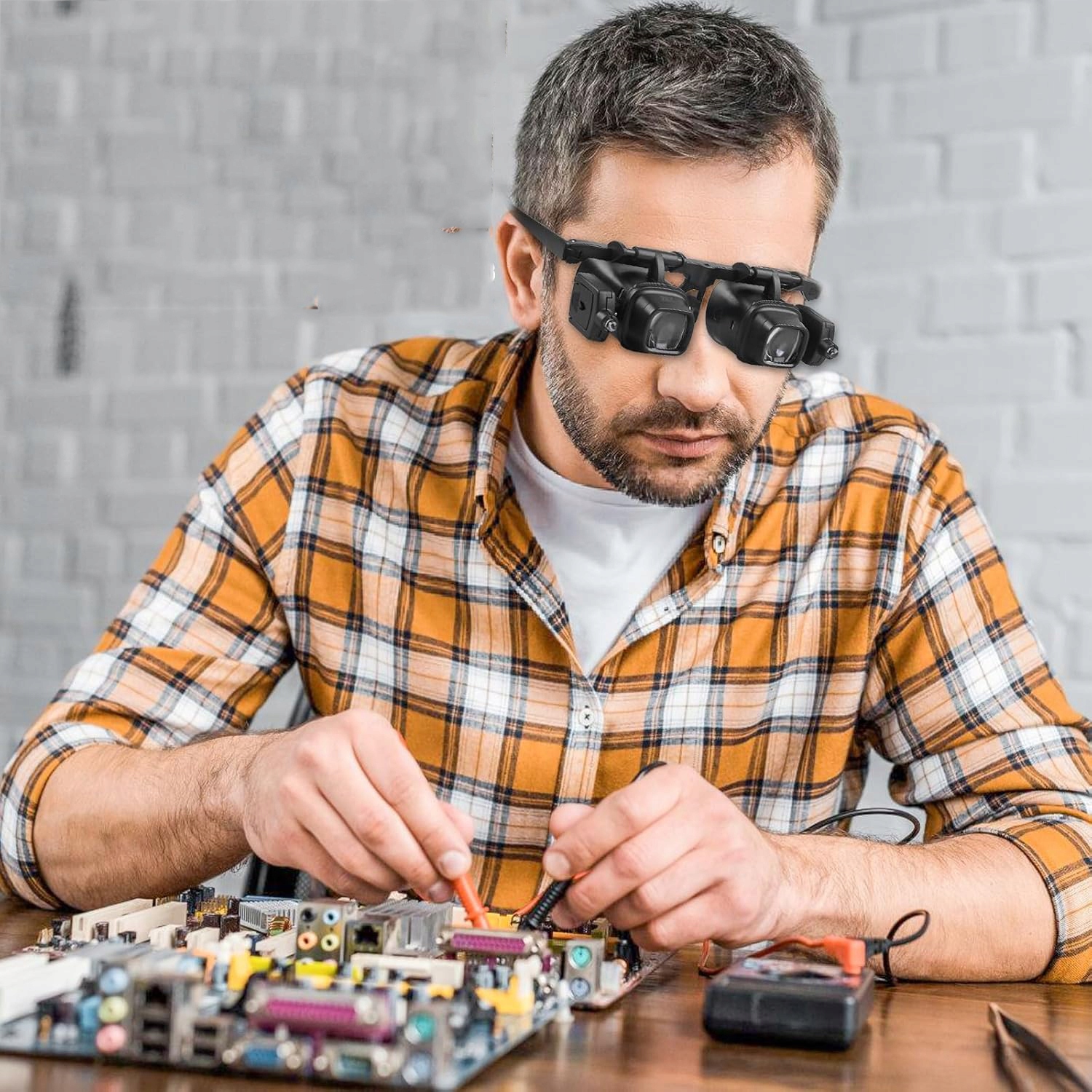 👓👓 [Эргономичный дизайн, крепящийся на голову] Эти увеличительные очки со светодиодной подсветкой имеют эргономичную форму для удобного сидения и не смещаются. Значительно снижает давление на переносицу и освобождает руки, позволяя сосредоточиться на деталях.