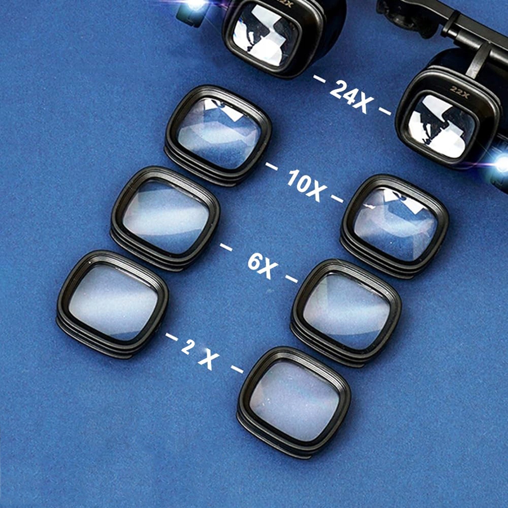 👓👓 [Сменные увеличительные линзы] Эти лупы, оснащенные 4 наборами сменных линз (2X, 6X, 10X, 24X), удовлетворят ваши разнообразные потребности в увеличении. Идеально подходит для идентификации ювелирных изделий, ремонта часов и чтения. Линзы можно быстро и легко заменить, их можно хранить в прилагаемом футляре для хранения, что делает их идеальными для точной работы или повседневного использования.