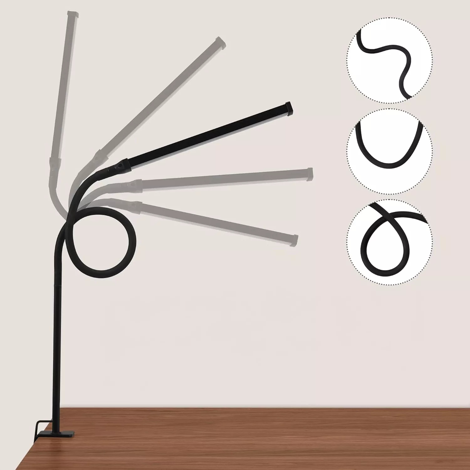 ✅ Лампа имеет гибкую руку лебедя, который можно свободно отрегулировать в диапазоне 360 ° . Благодаря этому вы можете установить лампу под любым углом. Металлический зажим обеспечивает стабильность и позволяет легко прикрепить лампу к столу