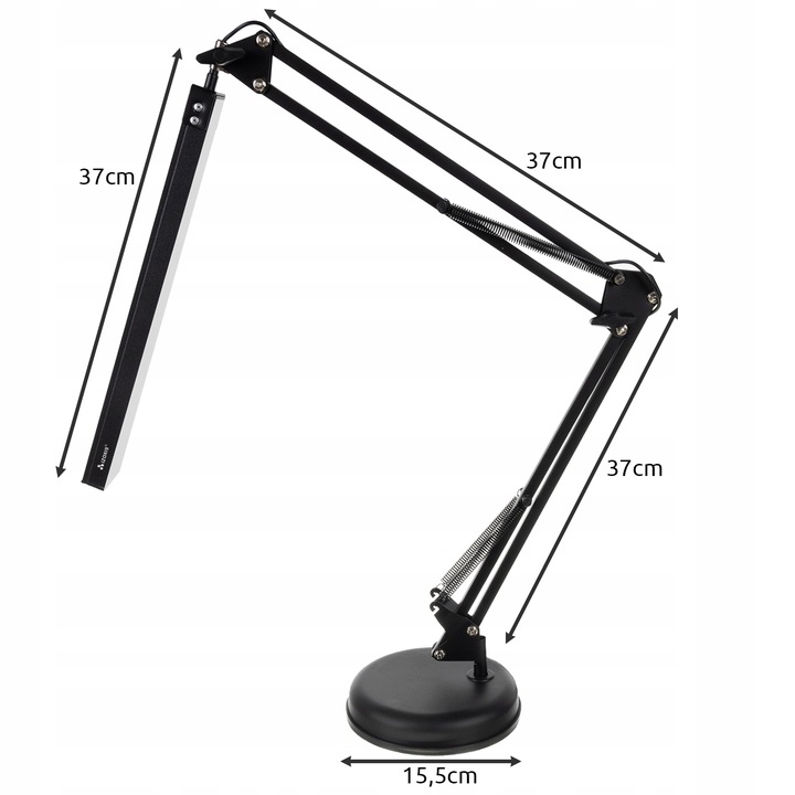 - спецификация - цвет: черный; Материал: алюминий, другие: PVC + ABS + PP + PC + Iron; Светодиод: 80; Количество уровней освещения: 10; Количество легких цветов: 3; Источник света: LEDY 4000K; Регулировка: 360/220 / 270 градусов; Плагин: USB; Сила: 5,6 Вт; Напряжение: 230 В; Длина кабеля: 120 см; Количество люмен: 400 длина святой панели: 37 см; Размеры: каждое плечо 37 см, диаметр основания: 15,5 см; Вес: 1,35 кг; Вес в упаковке: 1,60 кг