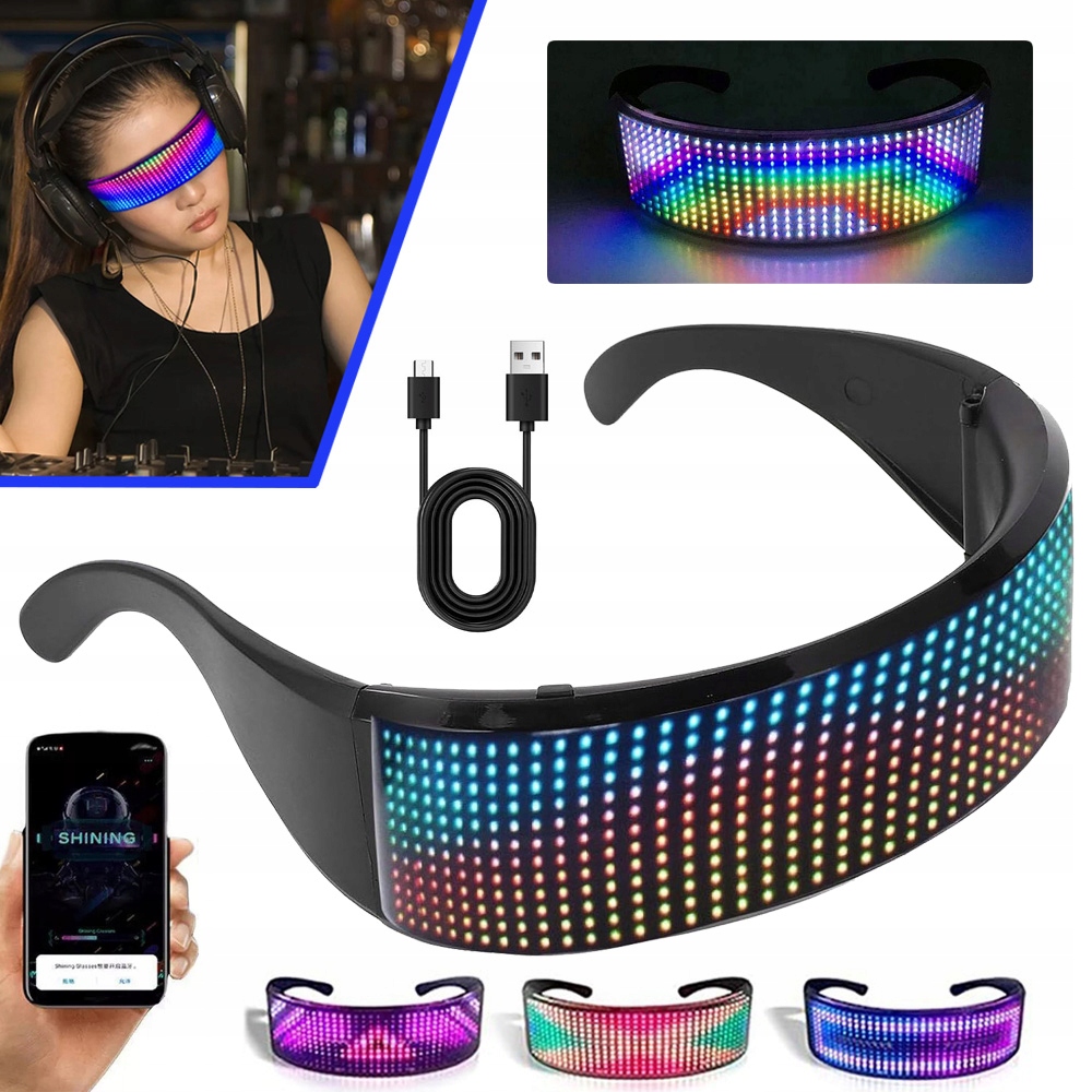 ОЧКИ С RGB СВЕТОДИОДАМИ СВЕТЯЩИЕСЯ ОЧКИ ПРОГРАММИРУЕМЫЕ ОЧКИ С BLUETOOTH МИГАЮЩИЕ ОЧКИ