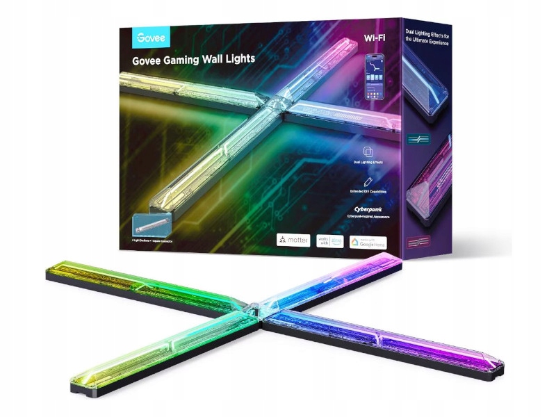 Светодиодные панели Govee H6063312 Игровая стена - это современное освещение, которое позволяет создавать уникальную атмосферу в каждой комнате, идеально подходит для зоны игрока. Панель состоит из многогранных светодиодных модулей, которые могут быть свободно связаны, создавая уникальные световые композиции. Благодаря приложению Govee Home, пользователь имеет полный контроль над освещением - он может выбирать из многих режимов, синхронизировать свет с музыкой, а также адаптировать яркость и цвета с смартфоном. Панели характеризуются легкой установкой на стене и минималистским дизайном, который идеально сочетается с современным дизайном интерьера.
