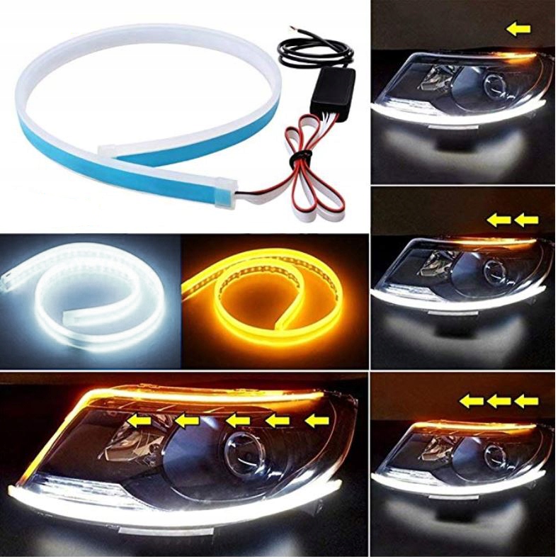 Полоски светятся белым (6000 К) при обычном вождении. и оранжевый при использовании поворотников.