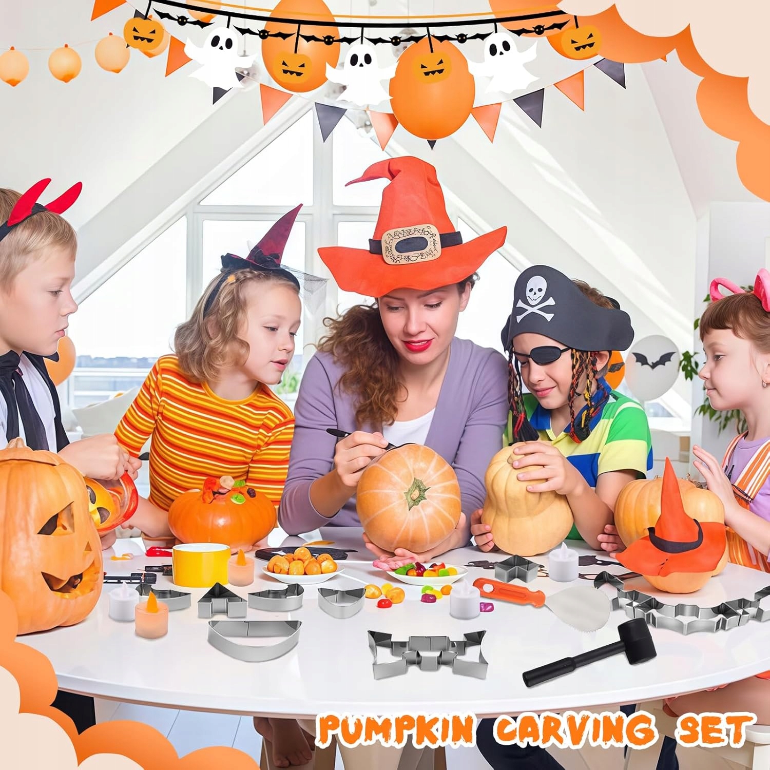 Лезвие позволяет быстро опустошать тыкву, пилу помогает в точной резке, а молоток и шаблоны облегчают создание конструкций 🎭🎨. Весь набор прост в очистке и может использоваться много раз в различных случаях 🎉♻.