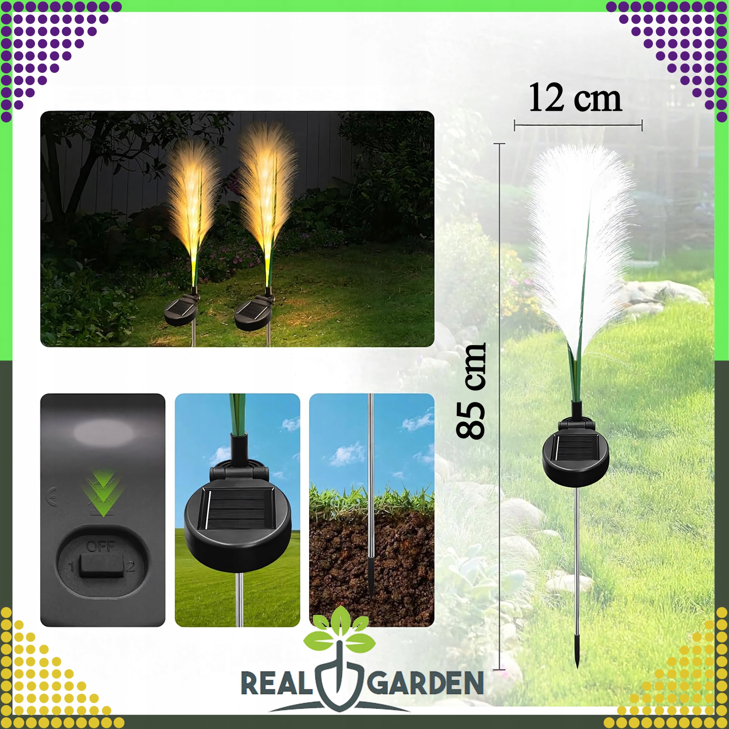 Почему стоит выбирать нашу лампу? Pampas Grass делает, что лампа является не только источником света, но и красивым украшением. > Лампа автоматически благодаря встроенной солнечной панели, исключая необходимость подключения к источнику питания