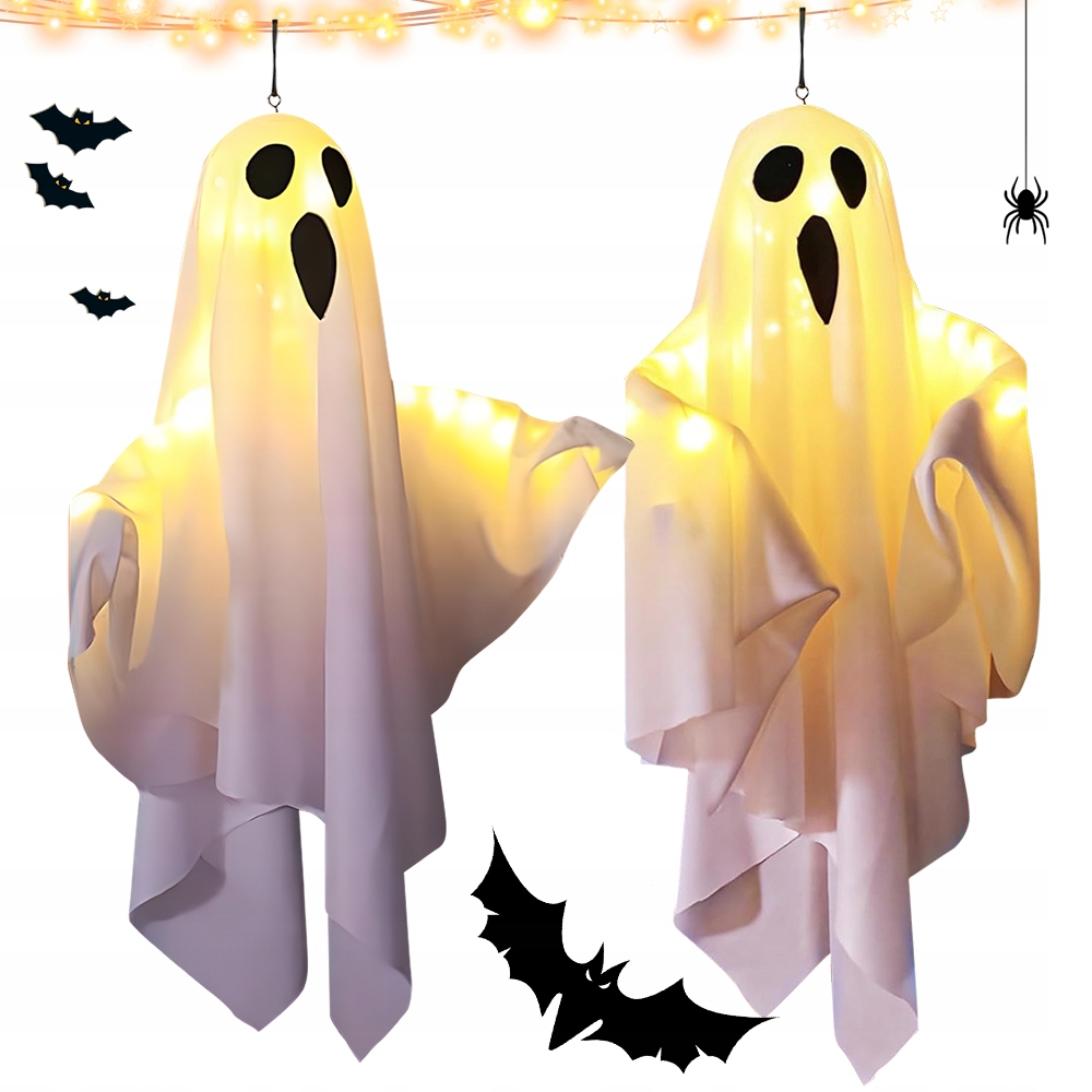 Каждая лампа рождественской дерево для Хэллоуина - шедевр дизайна, тщательно разработанный так, чтобы она напоминала плавучий призрак. Вы можете адаптировать положение белого духа к вашим потребностям. Эти уникальные висящие призраки на Хэллоуине создают атмосферу, идеально подходящую для вечеринок или добавить немного ужаса в украшение Хэллоуина.