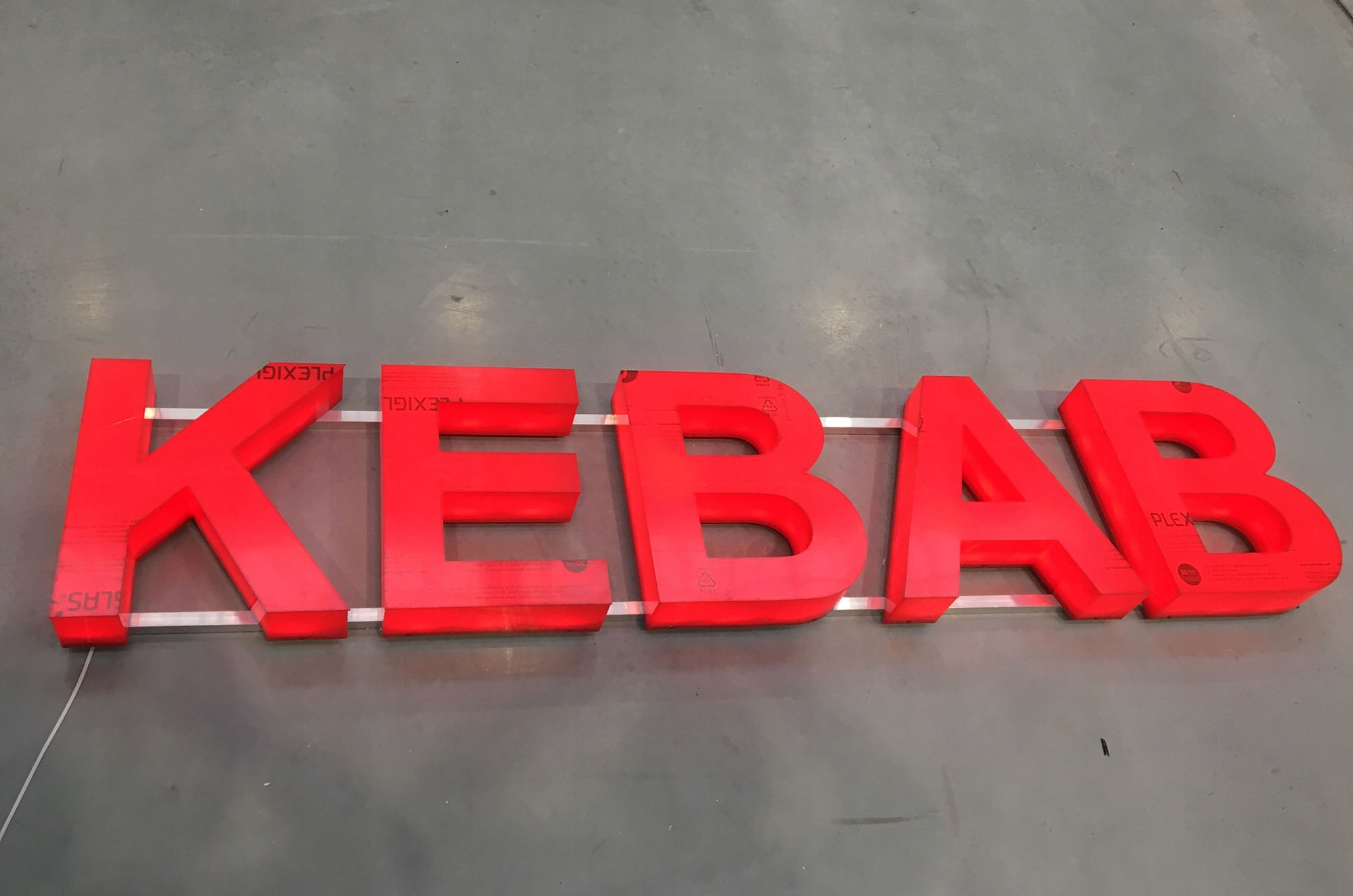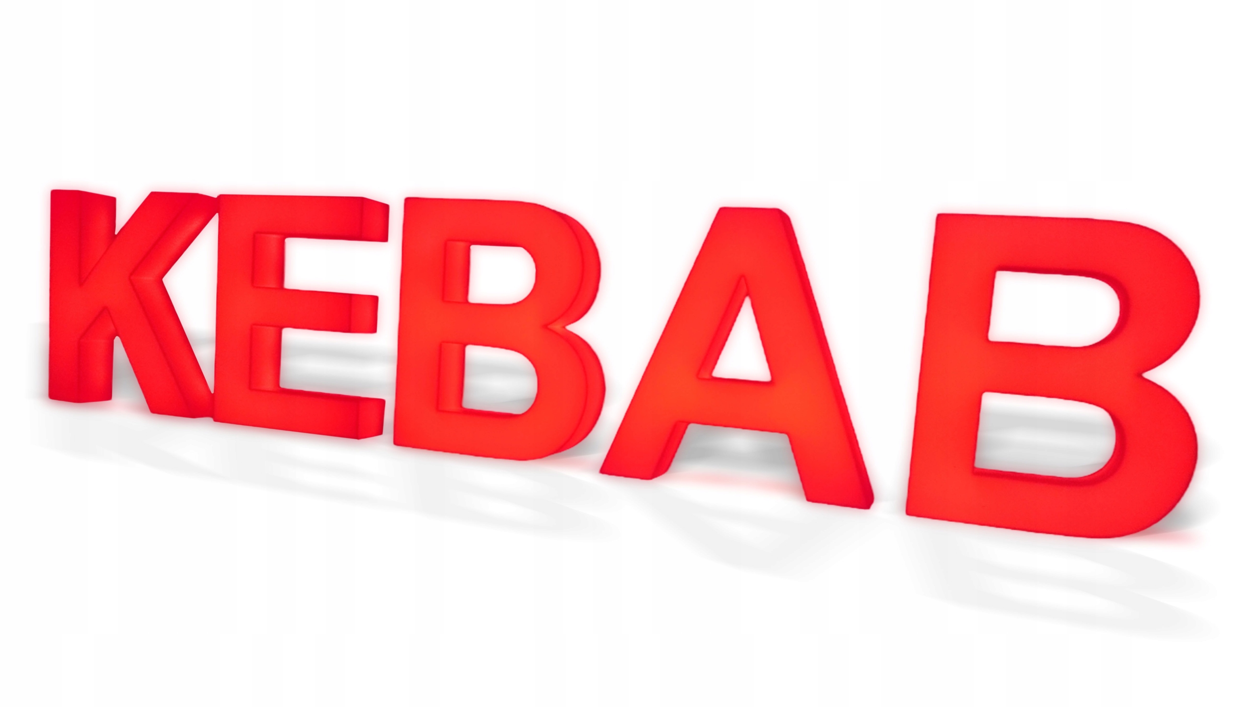 Светодиодные сияющие 3D -буквы кебаба с плексигласом 40 см.