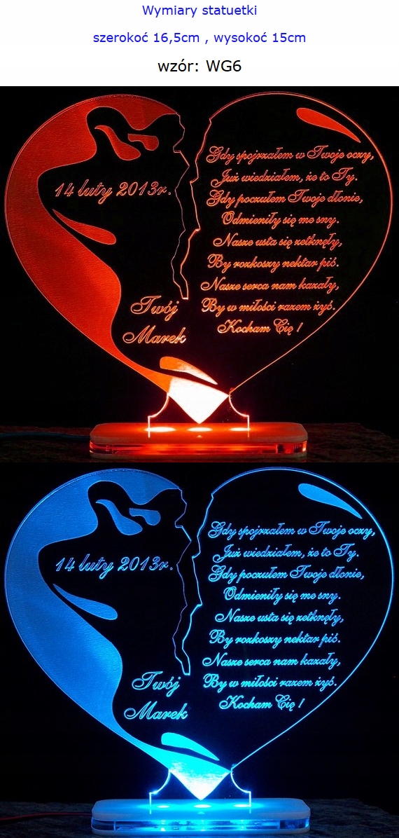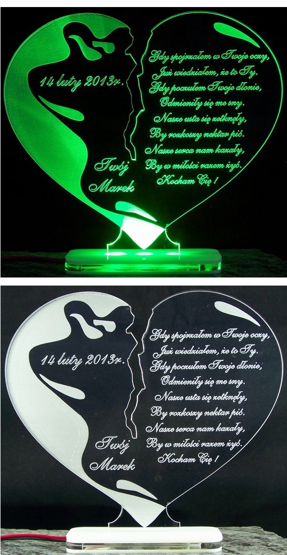 Світлодіодні валентинки, 4 кольори з гравіюванням «Розбите серце».