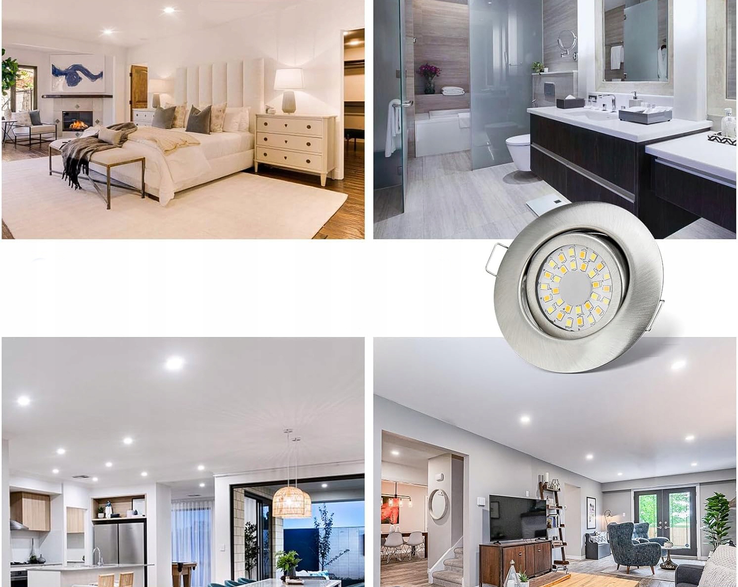 Поворотная конструкция: современная встраиваемая светодиодная лампа с ультраплоской встроенной поворотной конструкцией. Благодаря углу поворота 20° и углу луча 120° лампа обеспечивает обширное и естественное внутреннее освещение. Его элегантная матовая поверхность подчеркивает визуальную эстетику и идеально вписывается в различные композиции.