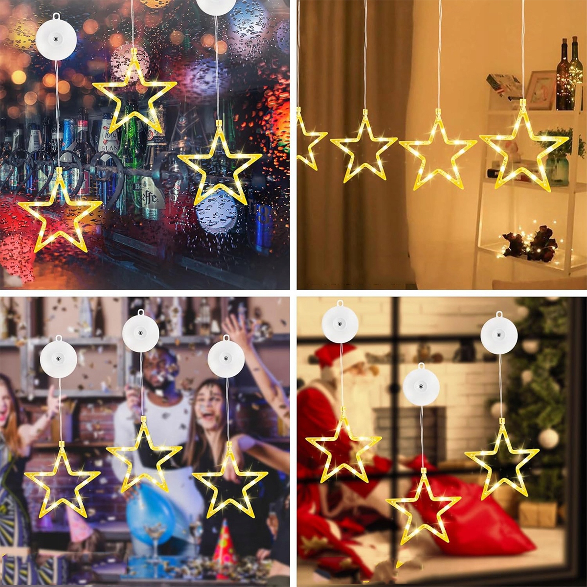 Новогодние светодиодные гирлянды в форме звездочек, 10 светодиодных гирлянд в форме штор, теплый белый свет, на батарейках, с присоской, таймер, елочные гирлянды для помещения, для рождественских украшений, для балконов, для вечеринок, свадеб