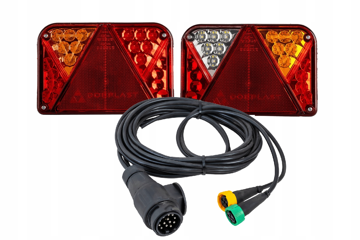 Комплект задних фонарей DOBPLAST DPT35 LED имеет целых 7 функций: габаритные огни, стоп-сигналы, указатели поворота, фонари заднего хода, противотуманные фары, подсветка номерного знака и отражатель. Благодаря светодиодной технологии они обеспечивают высокую долговечность, низкое энергопотребление и безопасность в любых условиях. Установка выполняется быстро благодаря 5-контактным байонетным разъемам, а сертификат E20 подтверждает соответствие европейским стандартам.