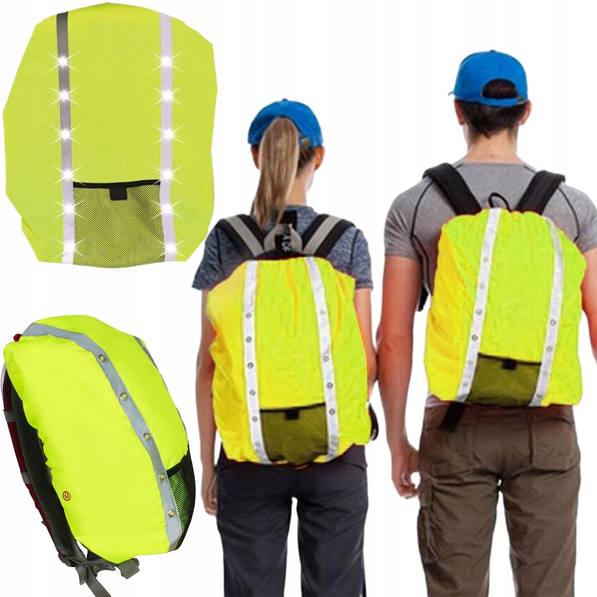 - ✅ Чехол рюкзака желтого цвета с двумя флуоресцентными полосками и светодиодами (3 режима)