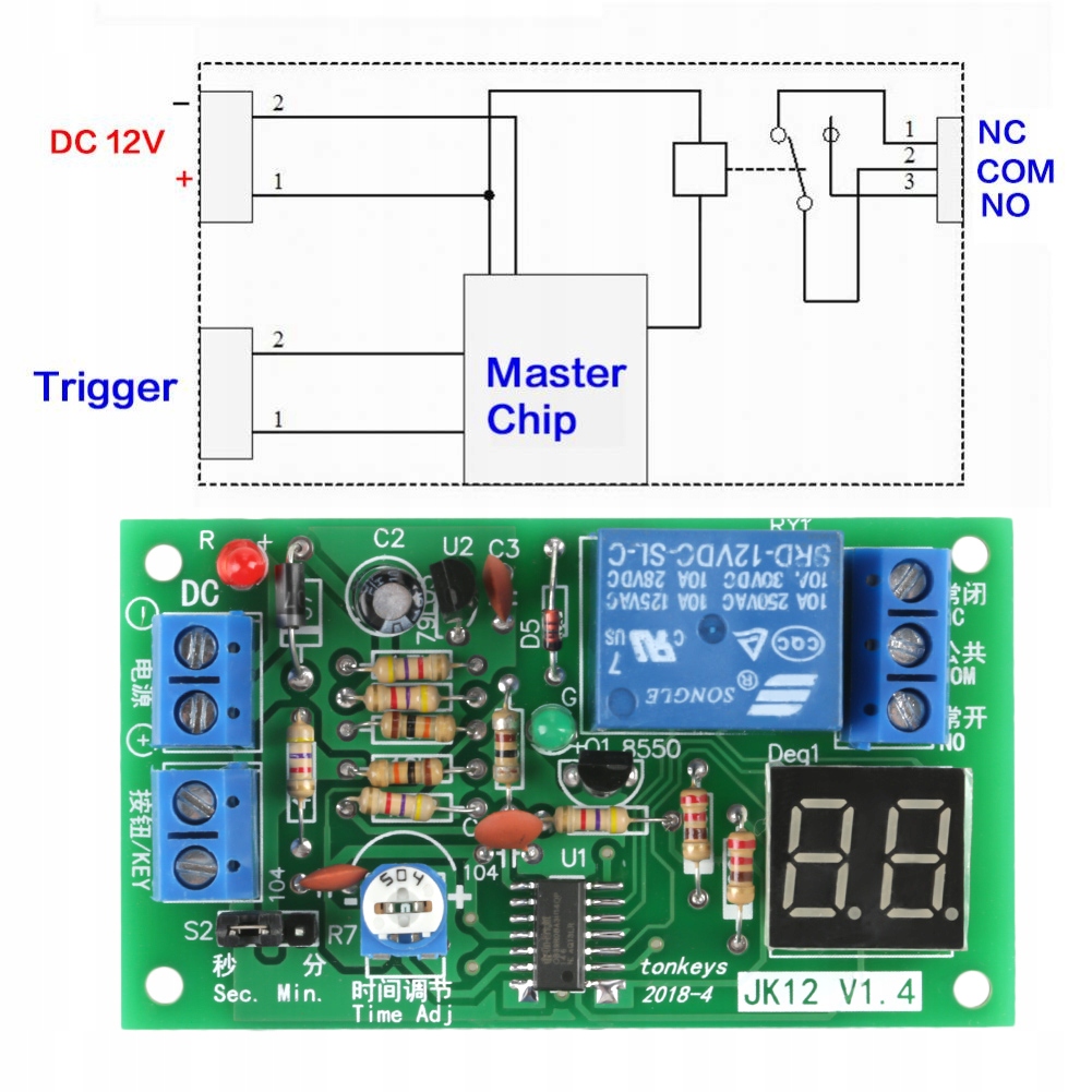 📌4. Имеется широкий временной диапазон, время задержки регулируется от 1 секунды до 99 секунд или от 1 минуты до 99 минут; Используйте перемычку для выбора секунд/минут