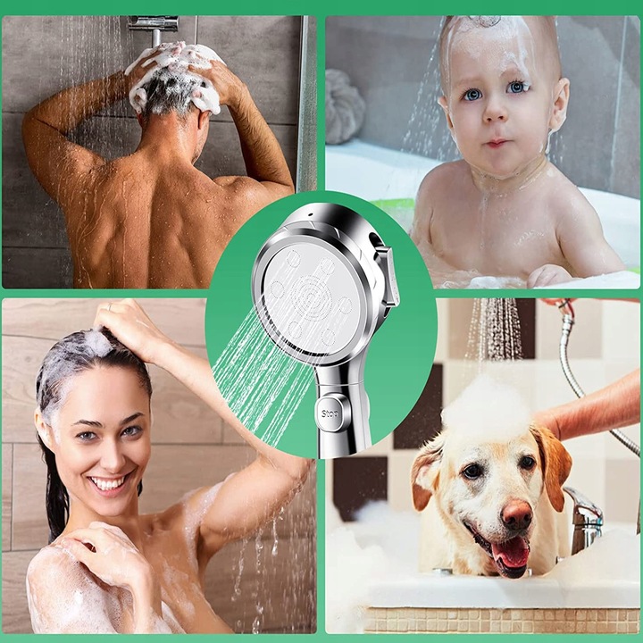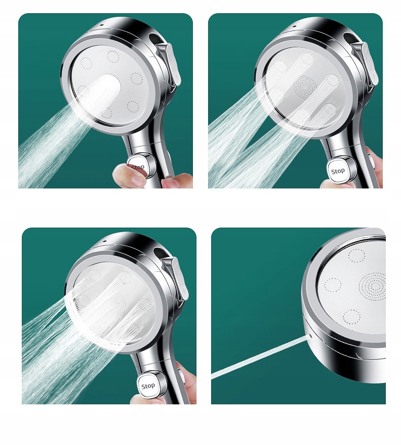4 различных режима струи душа в ванной, включая тропический душ, массаж, гидромассажную ванну и мощное ополаскивание. Каждая модель может обеспечить различные ощущения от естественного спа-процедуры, поэтому вы и ваша семья можете наслаждаться расслабляющим и комфортным душем дома, а также ее можно использовать для ежедневной уборки ванной комнаты, удобно очищать труднодоступные углы ванной комнаты и любимых домашних животных.