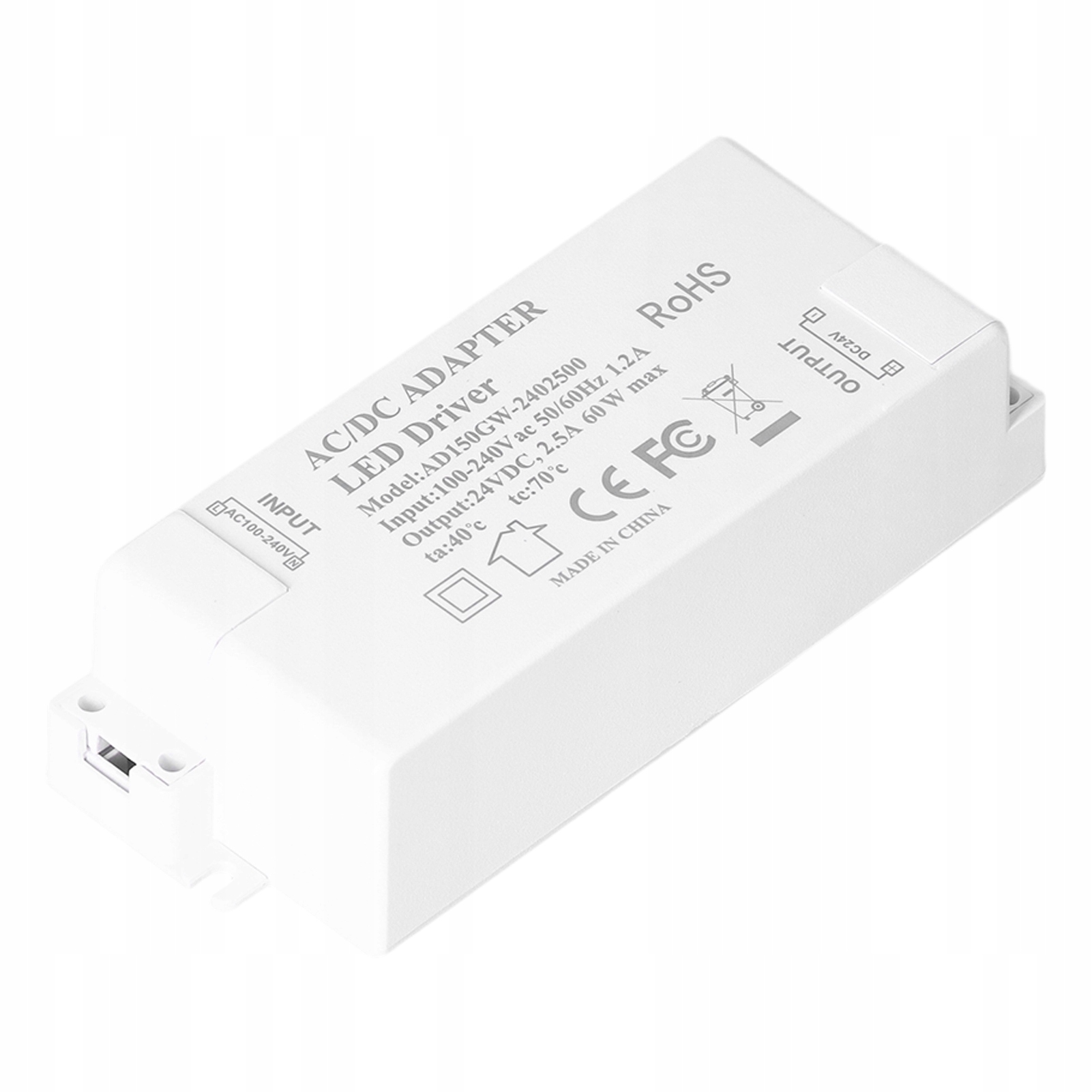Светодиодный драйвер DC24V 2,5A 60 Вт Светодиодный трансформатор DIY Лампа Источник питания AC100–240V