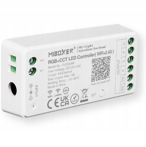 Приёмник Mi-Light FUT039W — это радиоконтроллер, к которому можно подключить Светодиодные ленты RGB+ CCT питаются от напряжения 12В и 24В. Светодиодный контроллер FUT039W — это устройство, которое мы устанавливаем между источником питания и светодиодной лентой и которое дает возможность управлять освещением с помощью радиопульта или мобильных приложений MiBoxer SMART и Tuya SMART (данная версия не требует использования дополнительного Wi-Fi-моста). Светодиодный контроллер RGB+CCT FUT039W является элементом обширной системы управления Mi-Light, которая позволит нам управлять освещением с помощью пульта дистанционного управления, сенсорного контроллера, кнопки звонка. или приложение на смартфоне. Это контроллер, который поддерживает светодиодное освещение, питаемое от безопасного источника низкого напряжения, что требует использования одного из многих доступных контроллеров серии Mi-Light.