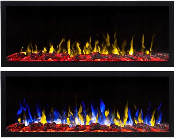 стеновой камин с очень реалистичным светодиодным пламенем. Он очень отличается своим размером, который составляет 115 см. Камин имеет три эффекта изменения цвета пламени и 5 эффектов яркости пламени.