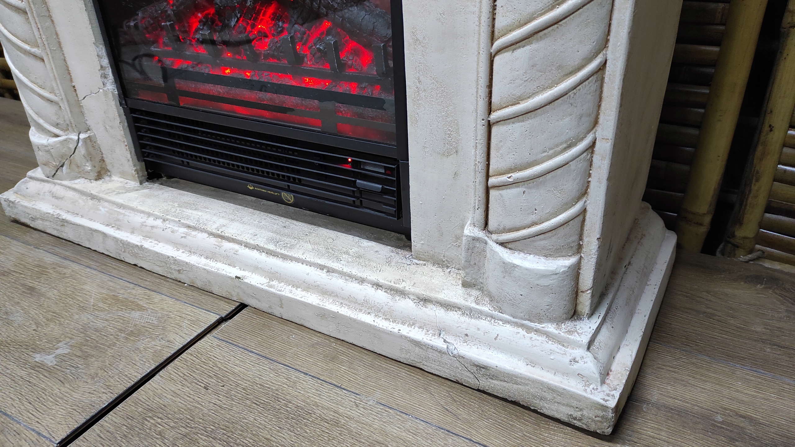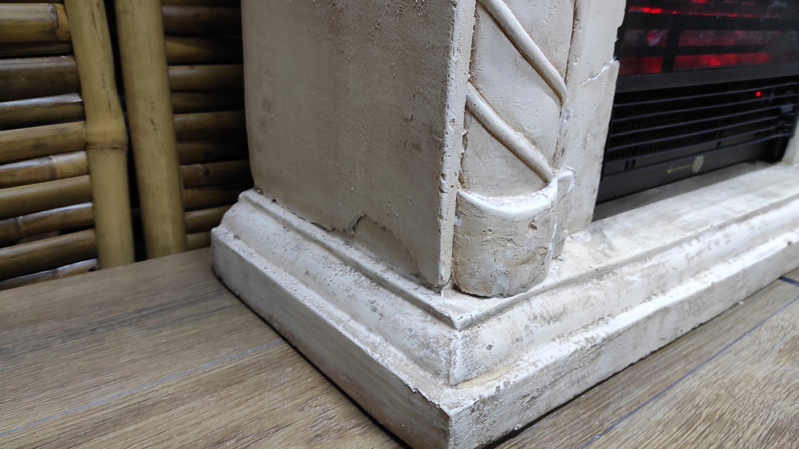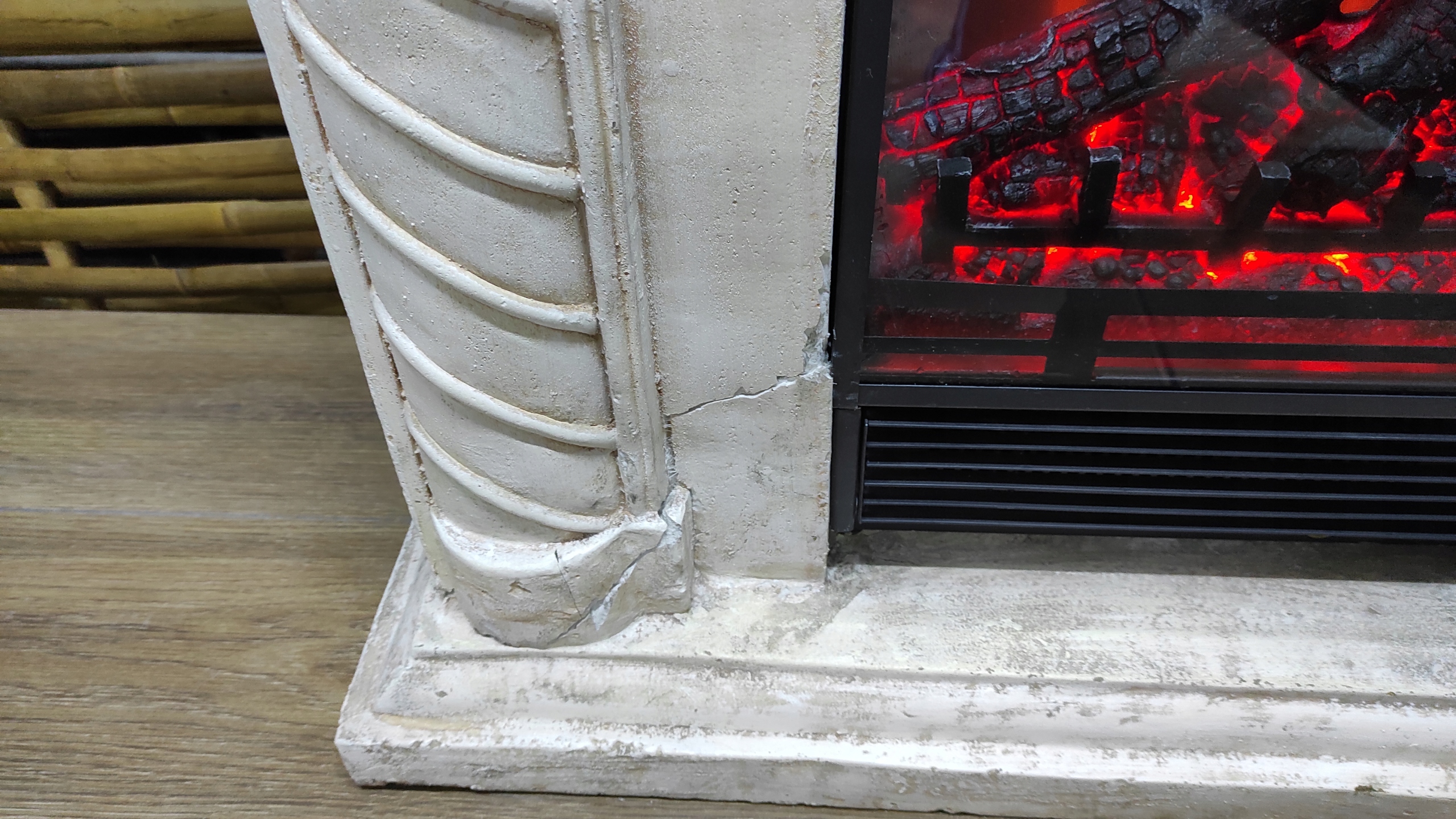 ЭКСПОЗИЦИОННЫЙ ТОВАР ПОВРЕЖДЕН ПРИ ТРАНСПОРТИРОВАНИИ - камин имеет несколько трещин в основании и на вставке - прилагаем дополнительные фотографии. Повреждения не влияют на устойчивость, камин можно смело ставить. Камин упакован во вторичную упаковку. Привлекательная цена!