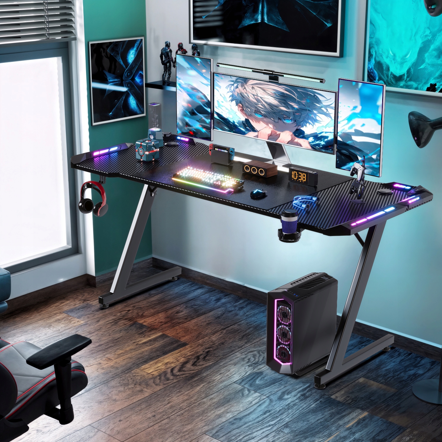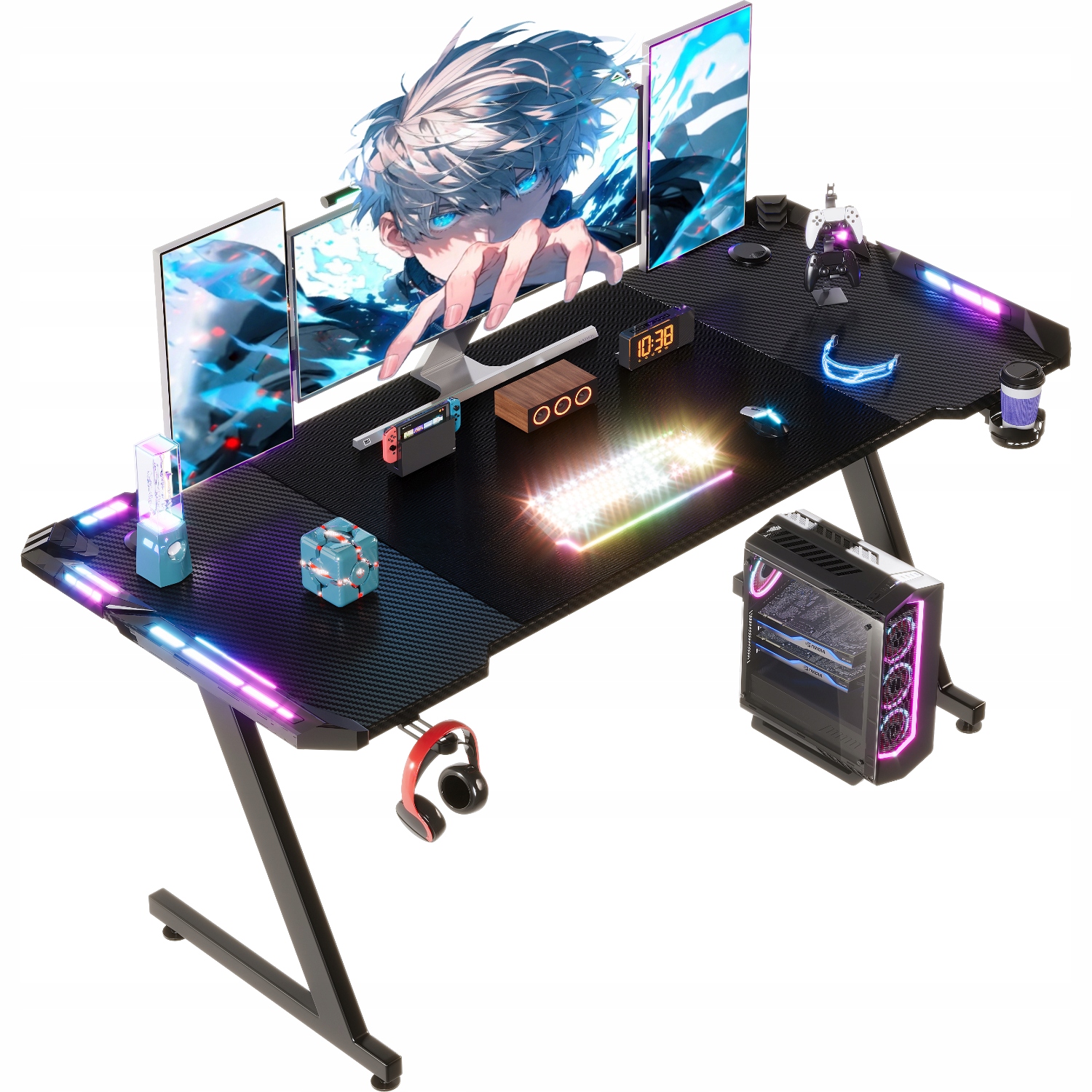 Игровой компьютерный стол со светодиодной подсветкой 140 x 60 см С подстаканником и крючком