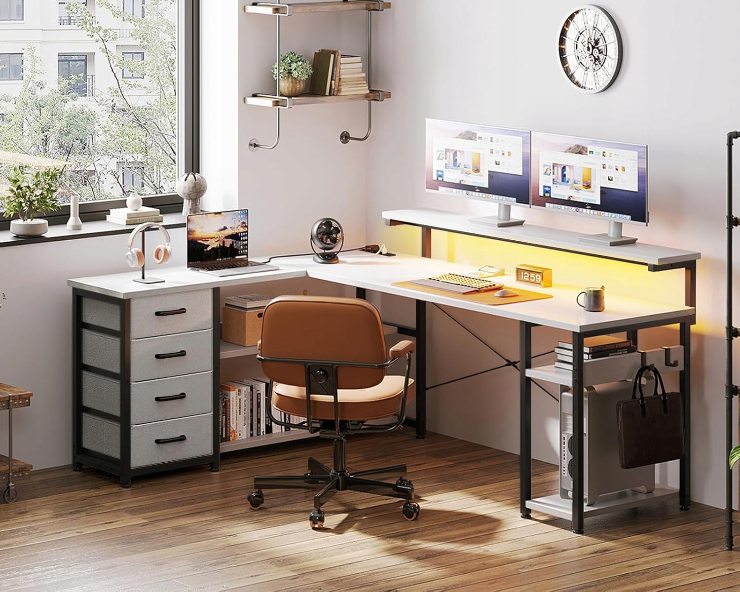 Стол ODK с ящиками, двухсторонний угловой стол с 2 розетками и 2 USB-портами для зарядки, Г-образный стол со светодиодами для домашнего офиса,