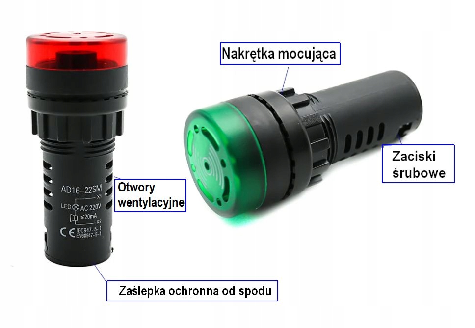 Светодиодный индикатор с зуммером на 230 В, диаметр монтажного отверстия 22 мм