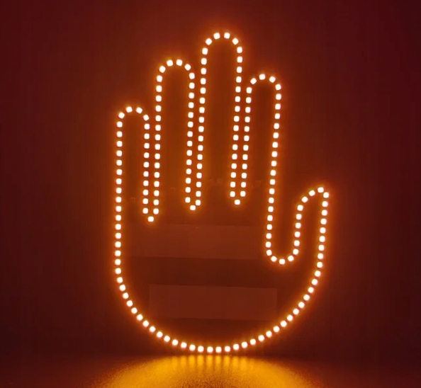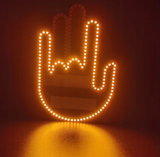 СВЕТОДИОДНЫЙ СИГНАЛ ЖЕСТОВ ДЛЯ ЗАДНЕГО СТЕКЛА АВТОМОБИЛЯ СРЕДНИМ ПАЛЕЦОМ