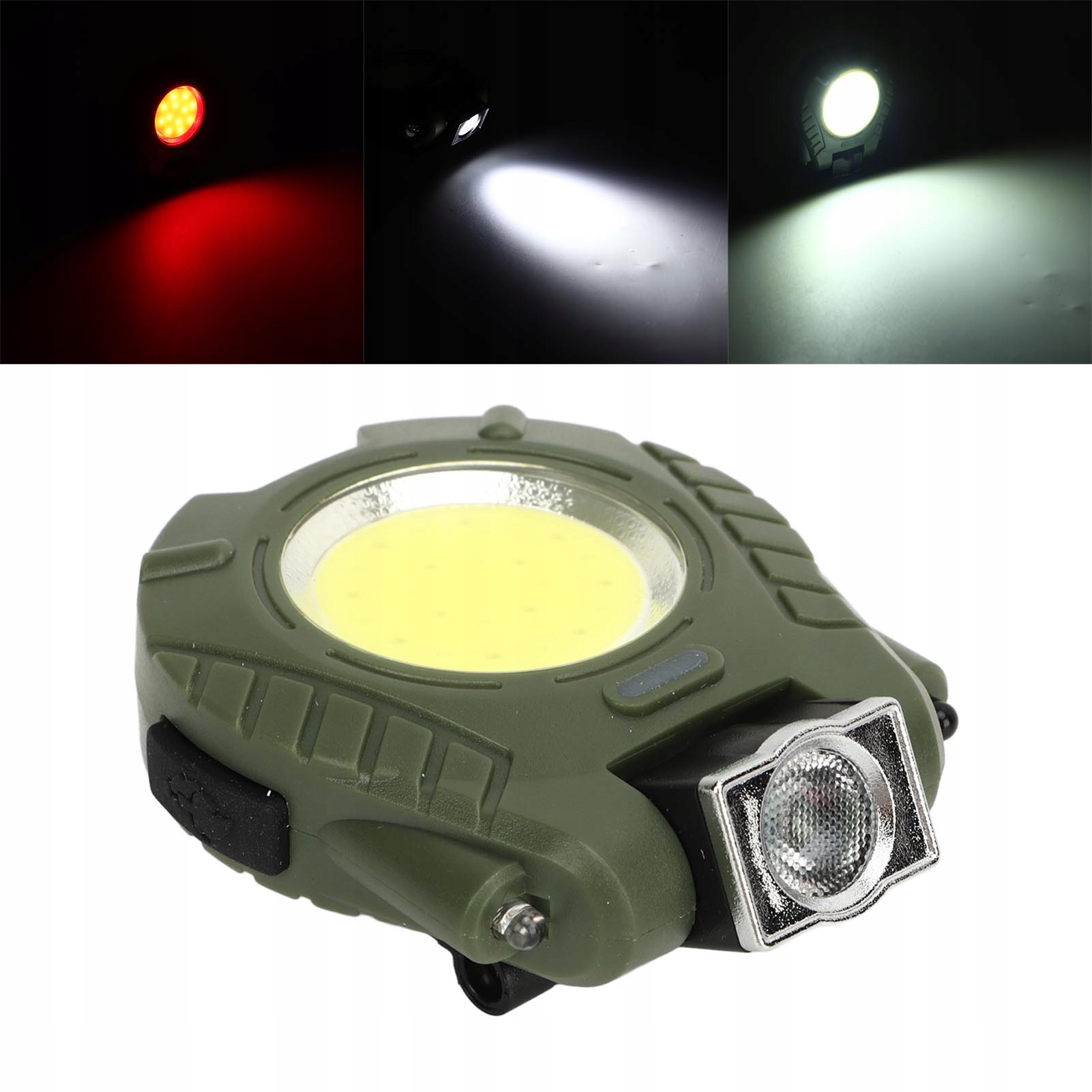 1. Светодиод и початка: светодиодный режим при высокой яркости, используемый в качестве фонарика, боковые пещеры для освещения широкого диапазона и режим красного света для сигнала SOS.