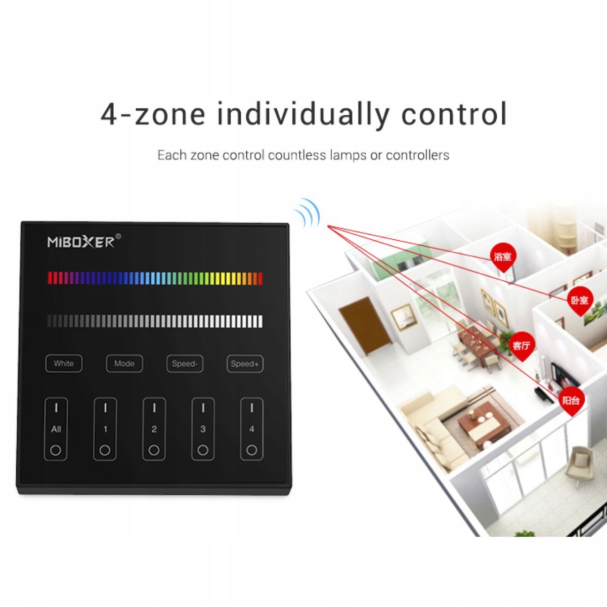 СВЕТОДИОДНАЯ ПАНЕЛЬ УПРАВЛЕНИЯ 4 ЗОНЫ RGBW MILIGHT B3