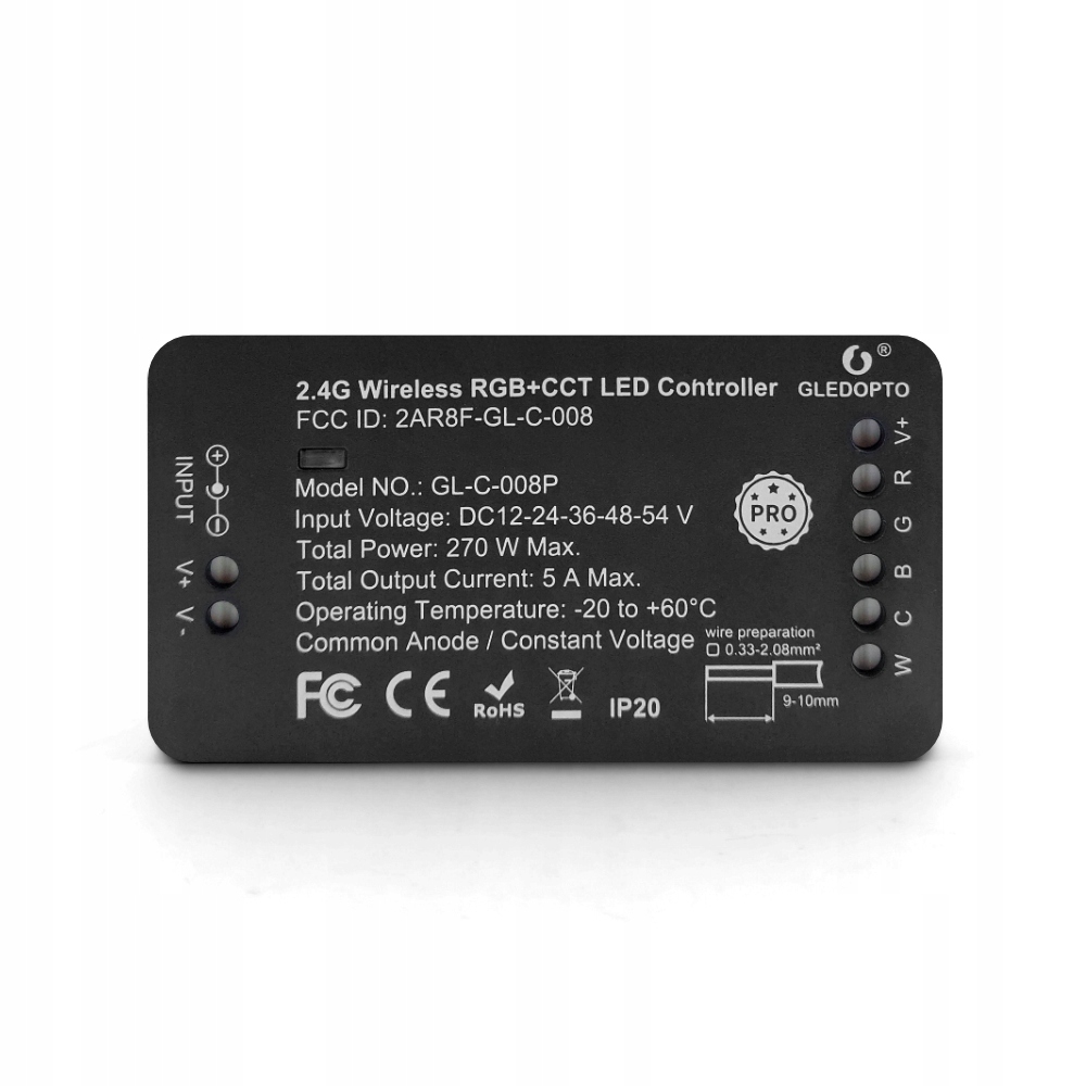 Контроллер GL-C-008P поддерживает ленты RGB и CCT с двумя белыми каналами