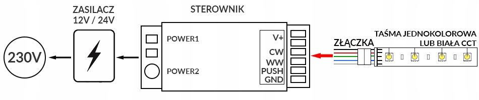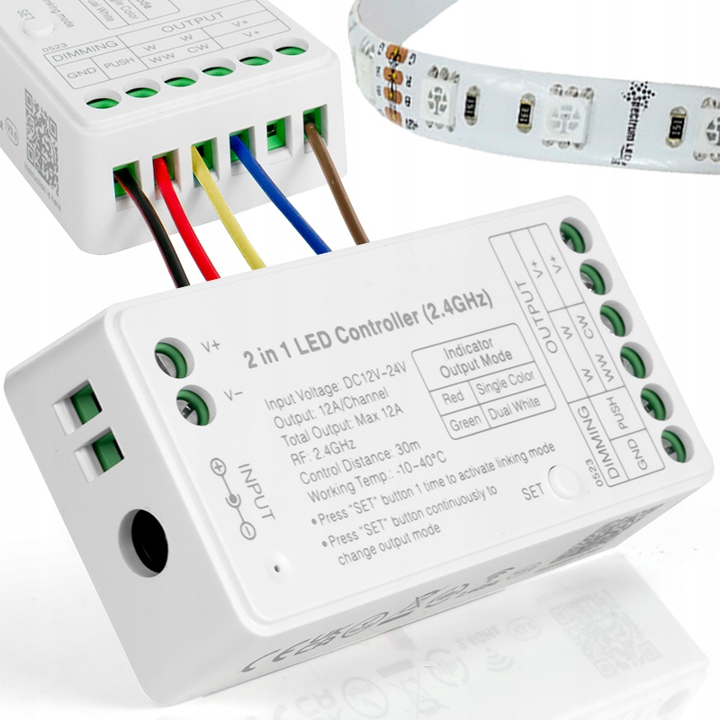 Контроллер поддерживает все - колорные светодиодные полоски - не только белые! Вы можете подключить ленты в любом равномерном цвете к контроллеру!
