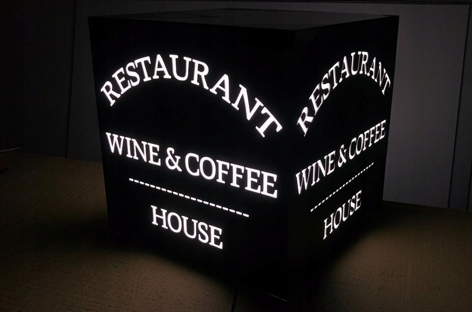 Кубическая коробка из оргстекла с подсветкой лицевой и боковых сторон, с возможностью оклейки графикой, 1 шт.