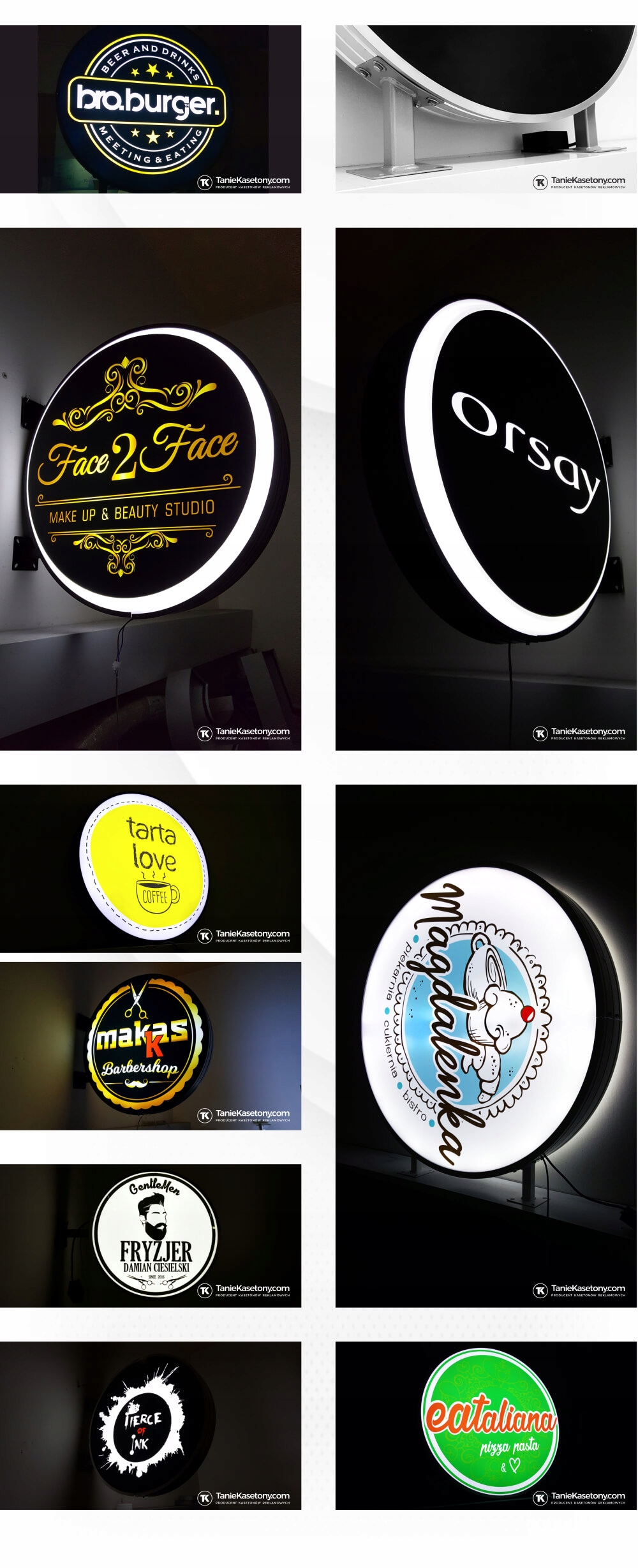Наши КРУГЛЫЕ световые короба состоят из двух пневматически изогнутых элементов кессонного профиля. В нашем предложении имеются кассеты диаметром 50, 75 и 100 с рамкой 10 см и 100, 120 и 150 с рамкой 14 см в одностороннем и двустороннем исполнении. Другие диаметры доступны при минимальном объеме производства 10 штук.